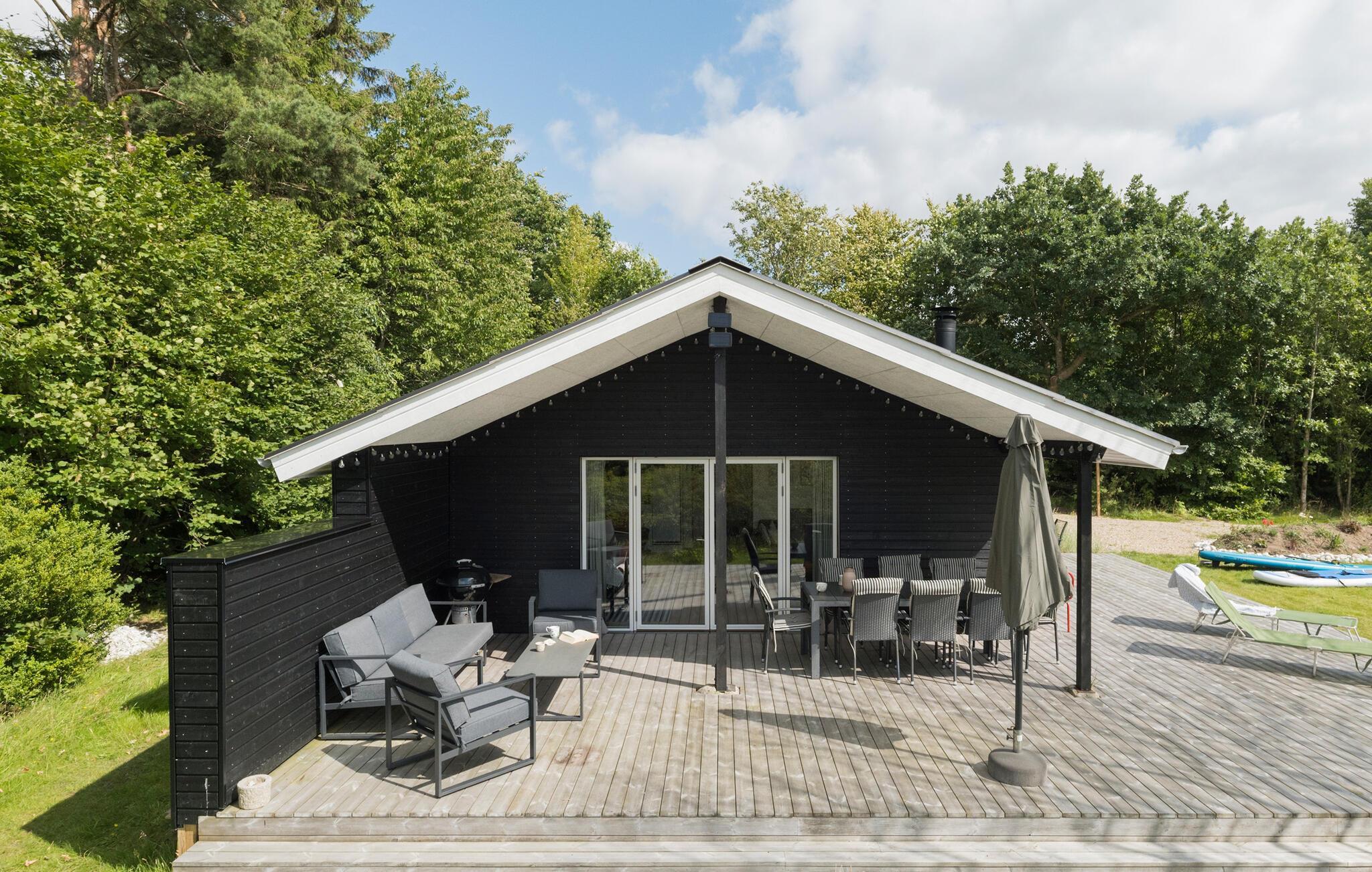 Nyd udsigten over landskabet i dette smagfulde feriehus med en stor træterrasse.