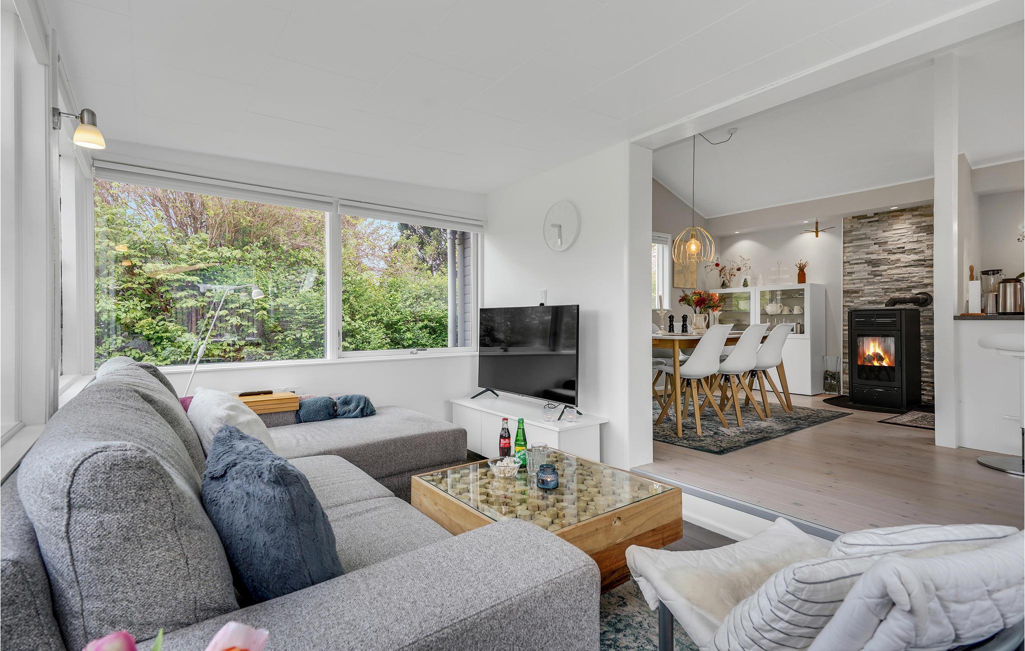 Lyst, moderne sommerhus med pilleovn og egen have, kun 600 meter fra fjorden.