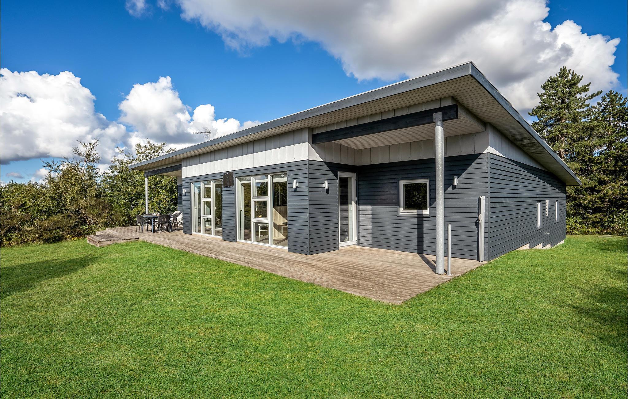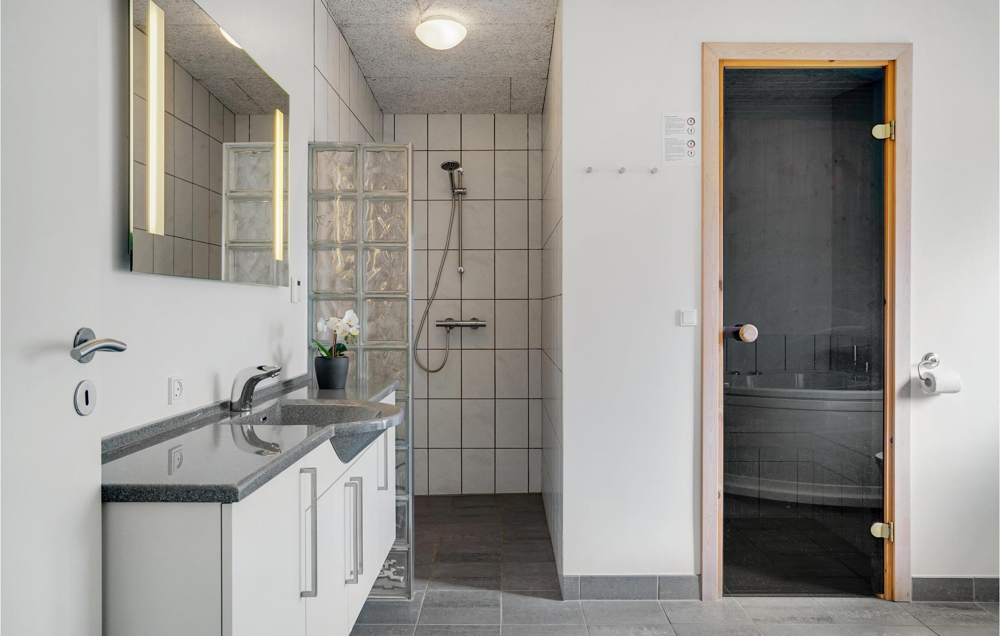 Moderne feriehus i Ebeltoft med sauna, spabad og aktivitetsrum tæt på børnevenlig strand.