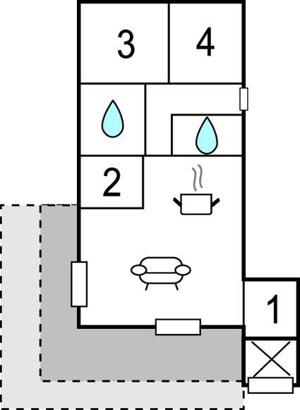 Badeværelse 4m2 (nr. 1) - WC. Varmt og koldt vand. Bruser