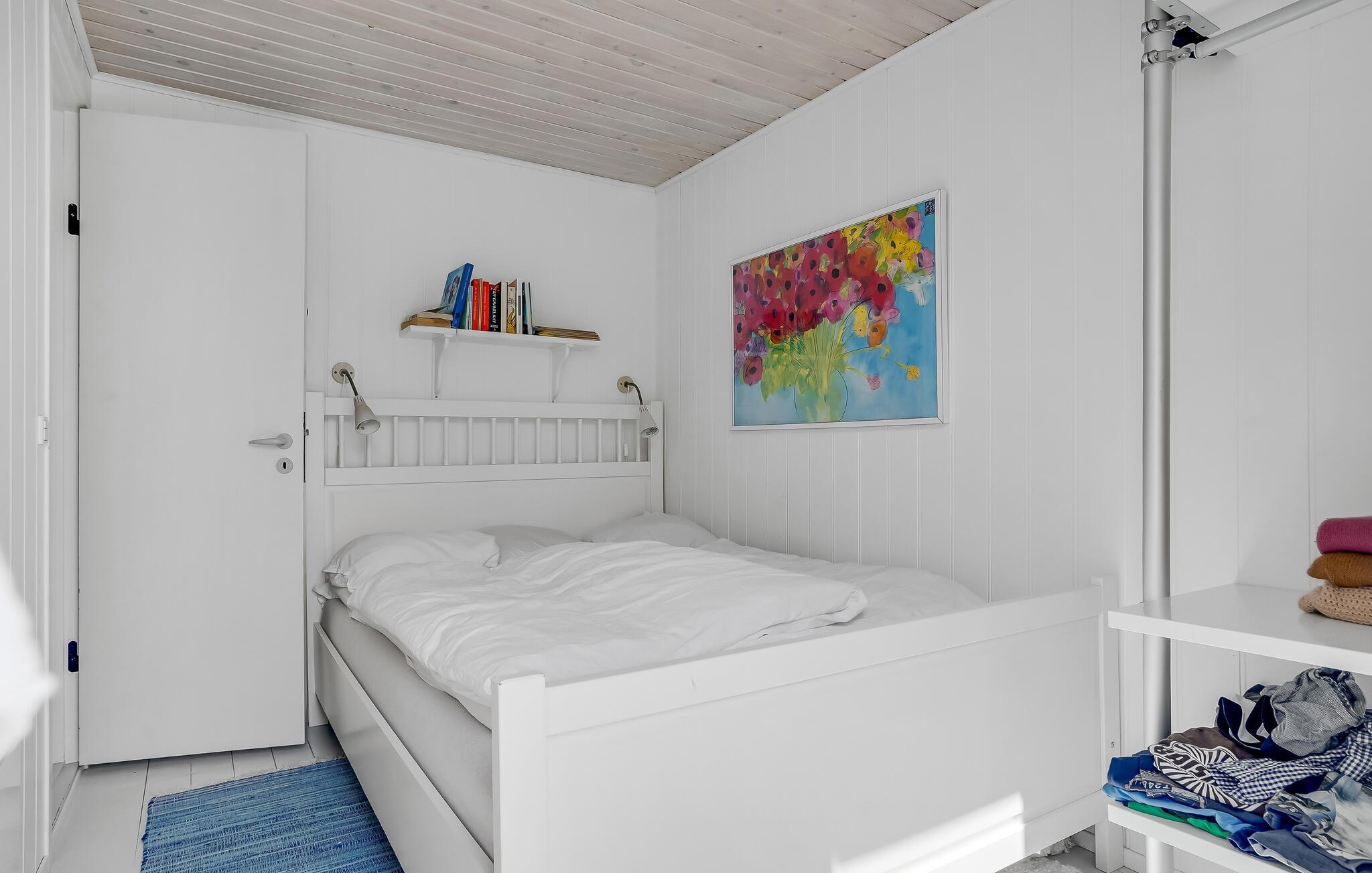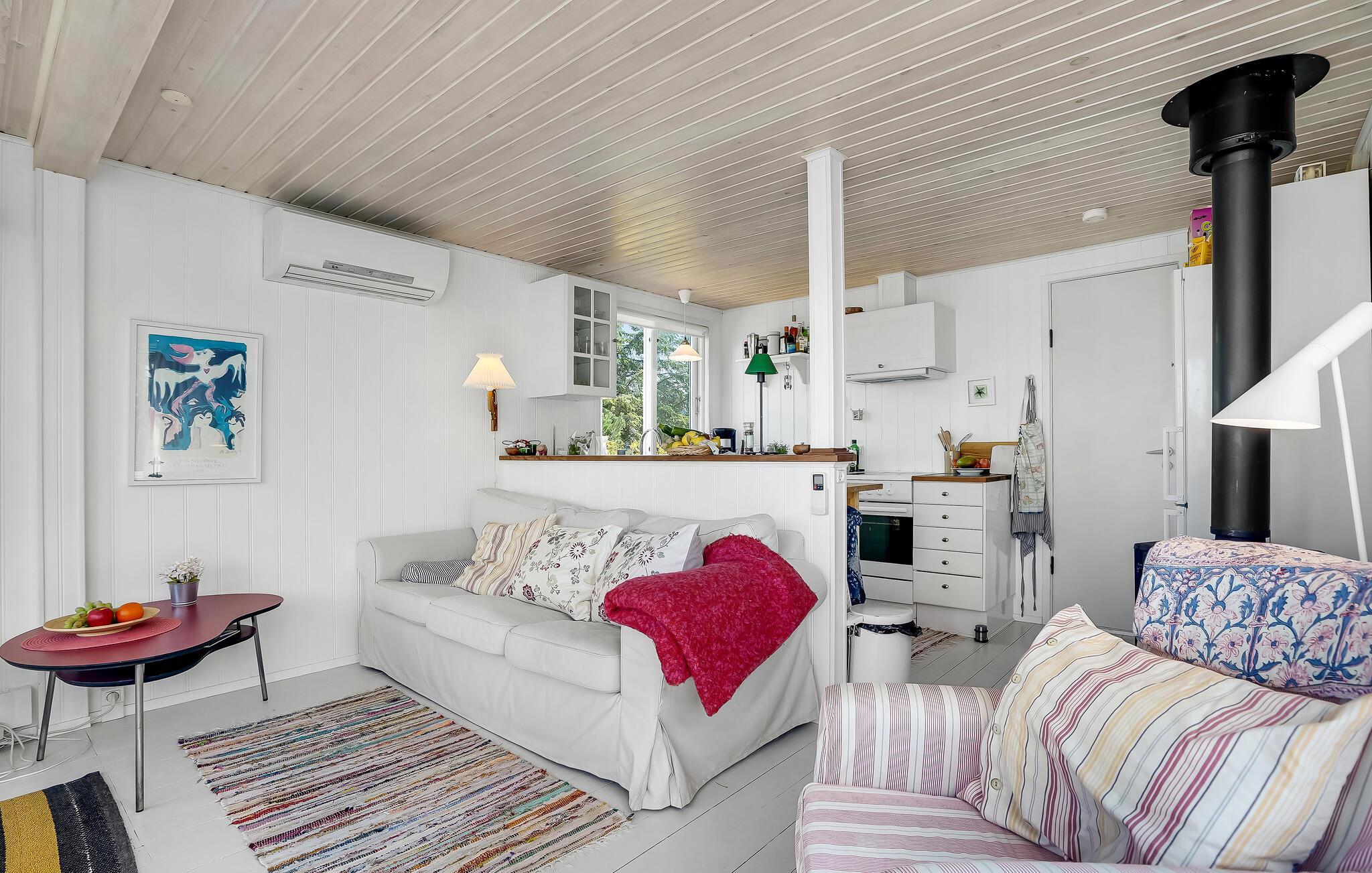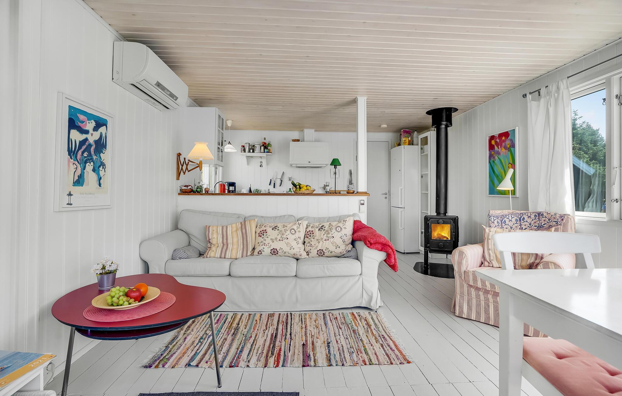 Huset er hyggeligt og lyst møbleret og har alt I behøver for at få en skøn og vellykket ferie. Det store lysindfald giver en behagelig atmosfære i stuen, hvor I kan tilbringe hyggelige stunder omkring madlavningen og samles om måltiderne eller et spil. På køligere aftener kan I slappe af ved pejsen og lytte til den knitrende ild. Huset råder desuden over et anneks med dobbeltseng.