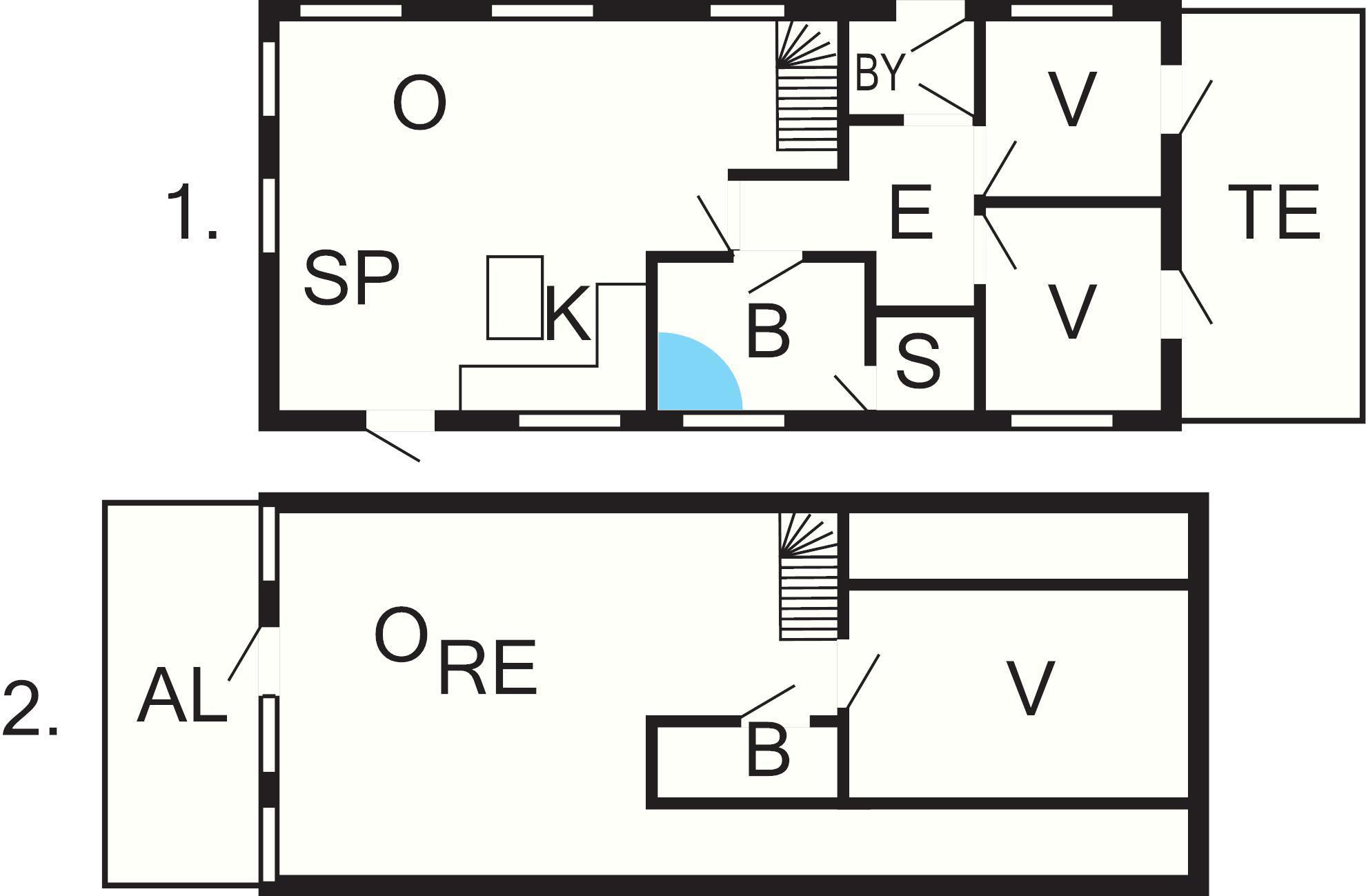 1 Opholdsstue: Brændeovn, cd-afspiller, tv, høj stol