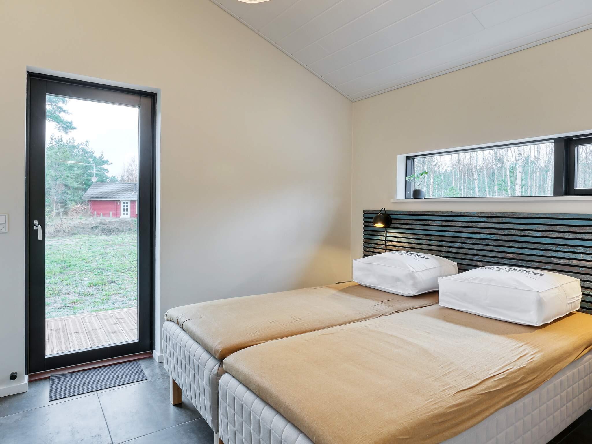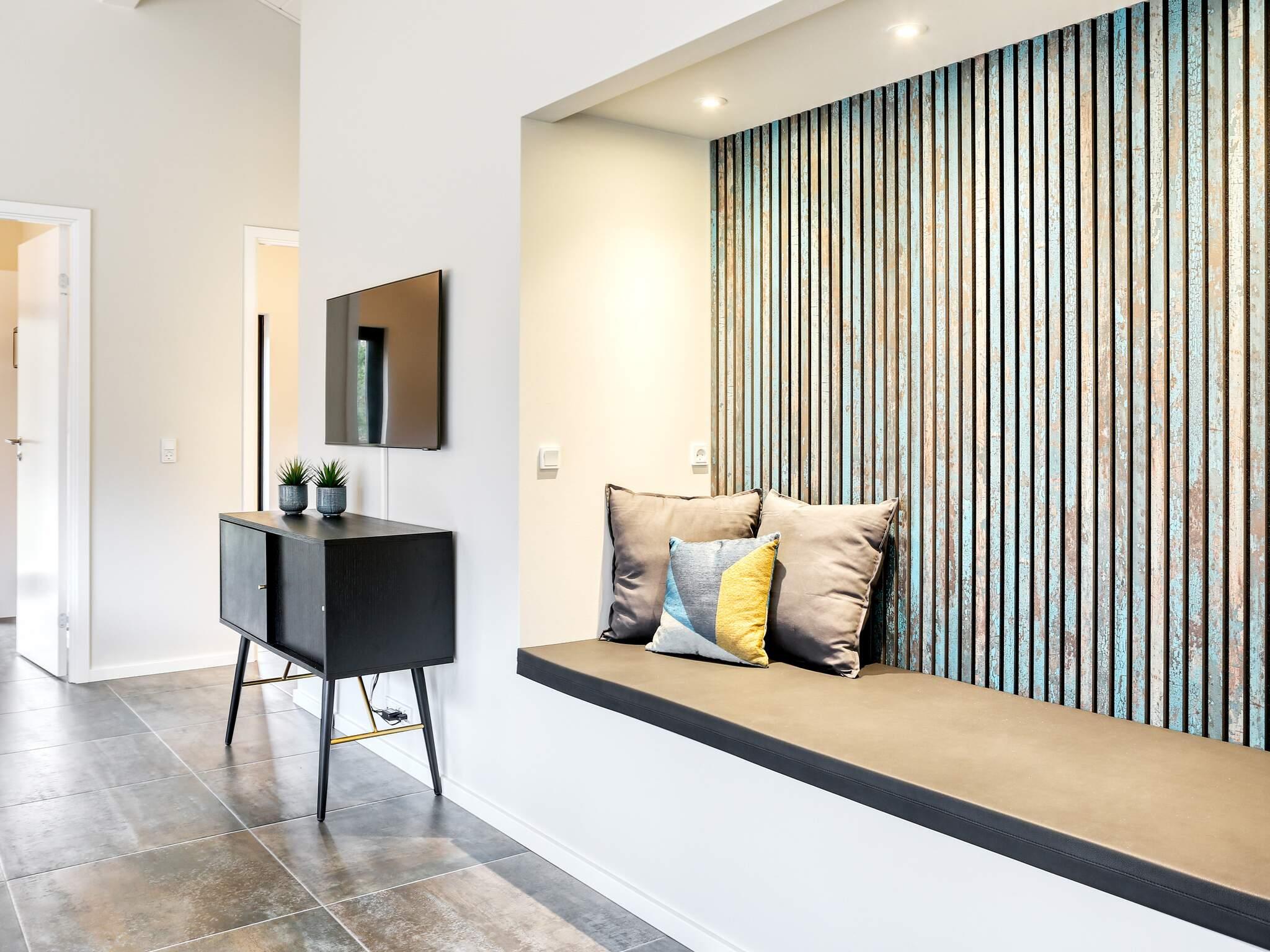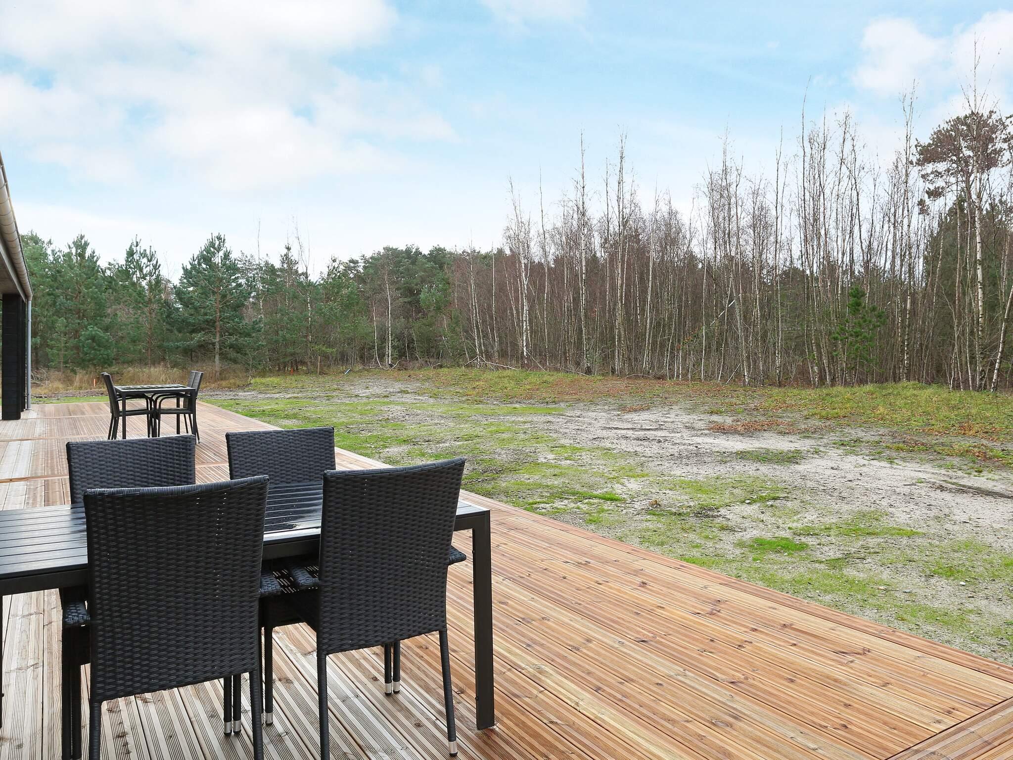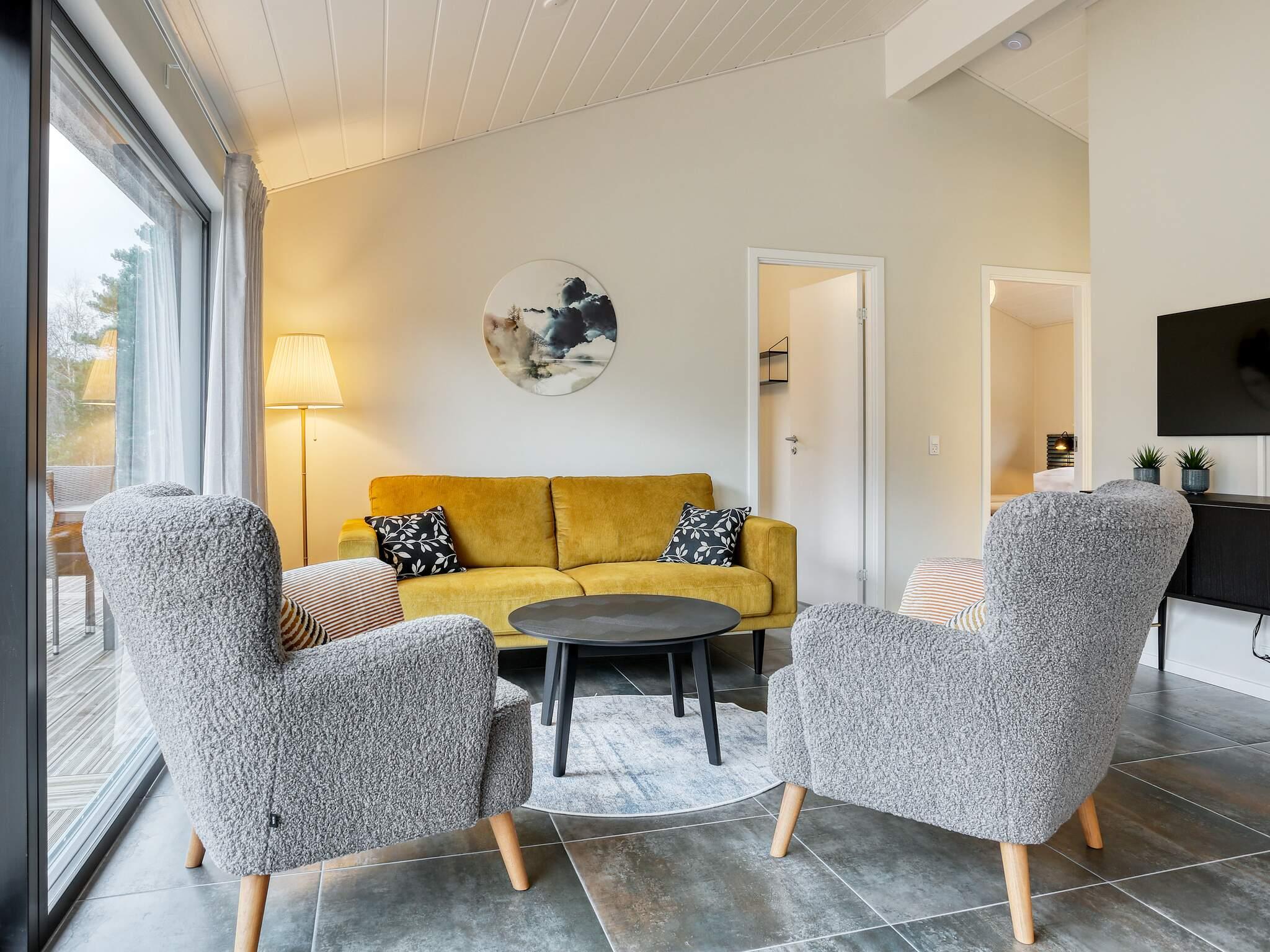 Det moderne feriehus byder ikke kun på masser af plads til familielivet, men også en hyggelig boligatmosfære med lyse rum. De store vinduespartier giver masser af dagslys og giver samtidig en smuk udsigt til træerne på naturejendommen. Køkken, spisestue og stue er samlet i ét langt rum, og fra det veludstyrede køkken har du et godt overblik over, hvad resten af ??familien laver. Feriehuset har fire gode soveværelser og to moderne badeværelser med behagelig gulvvarme. En alkove til hygge og afslapning byder på et hyggeligt læsehjørne eller en legehule for børnene. Rummet har flere vinduer, som kan åbnes ud til terrassen på varme dage. På terrassen omkring huset er der mange siddepladser med vindafskærmning, sol eller skygge, alt efter hvad du foretrækker.