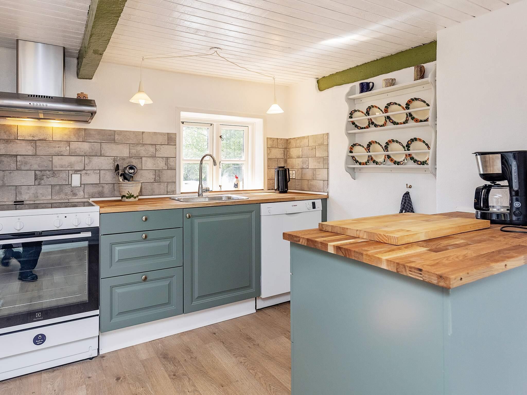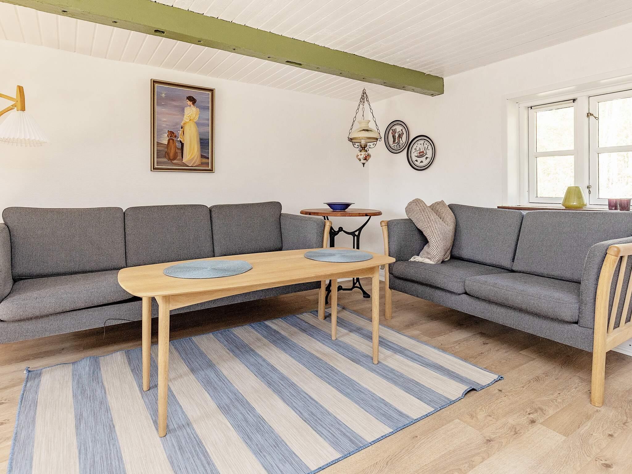 Indvendigt bevarer huset sin autentiske charme med lavere lofter typisk for ældre danske hjem. Indretningen omfatter entré, badeværelse med bruseniche samt køkken med spiseplads, åbent til lys stue med brændeovn og varmepumpe for helårskomfort. To gode soveværelser giver afslappende sovearrangementer.