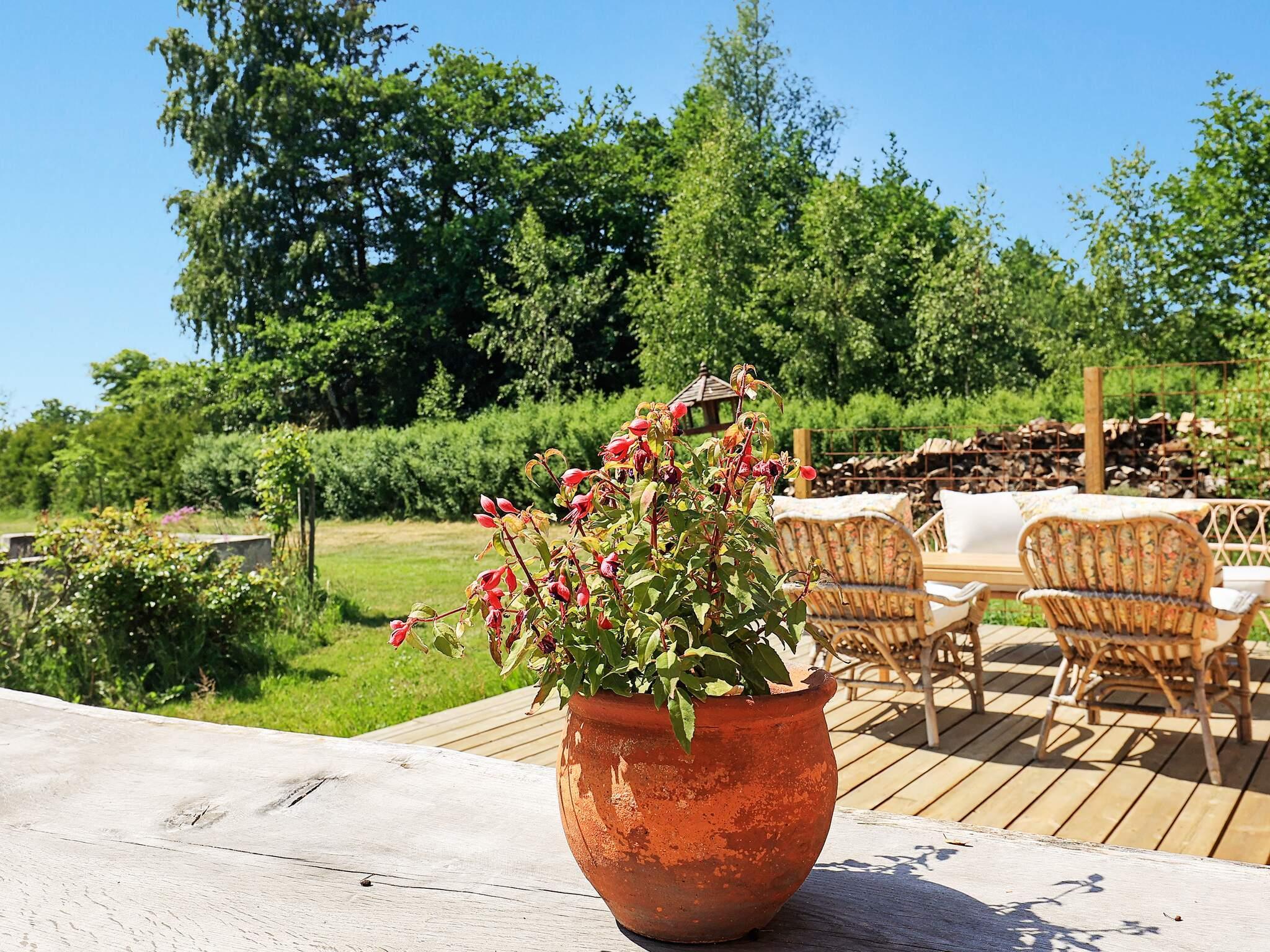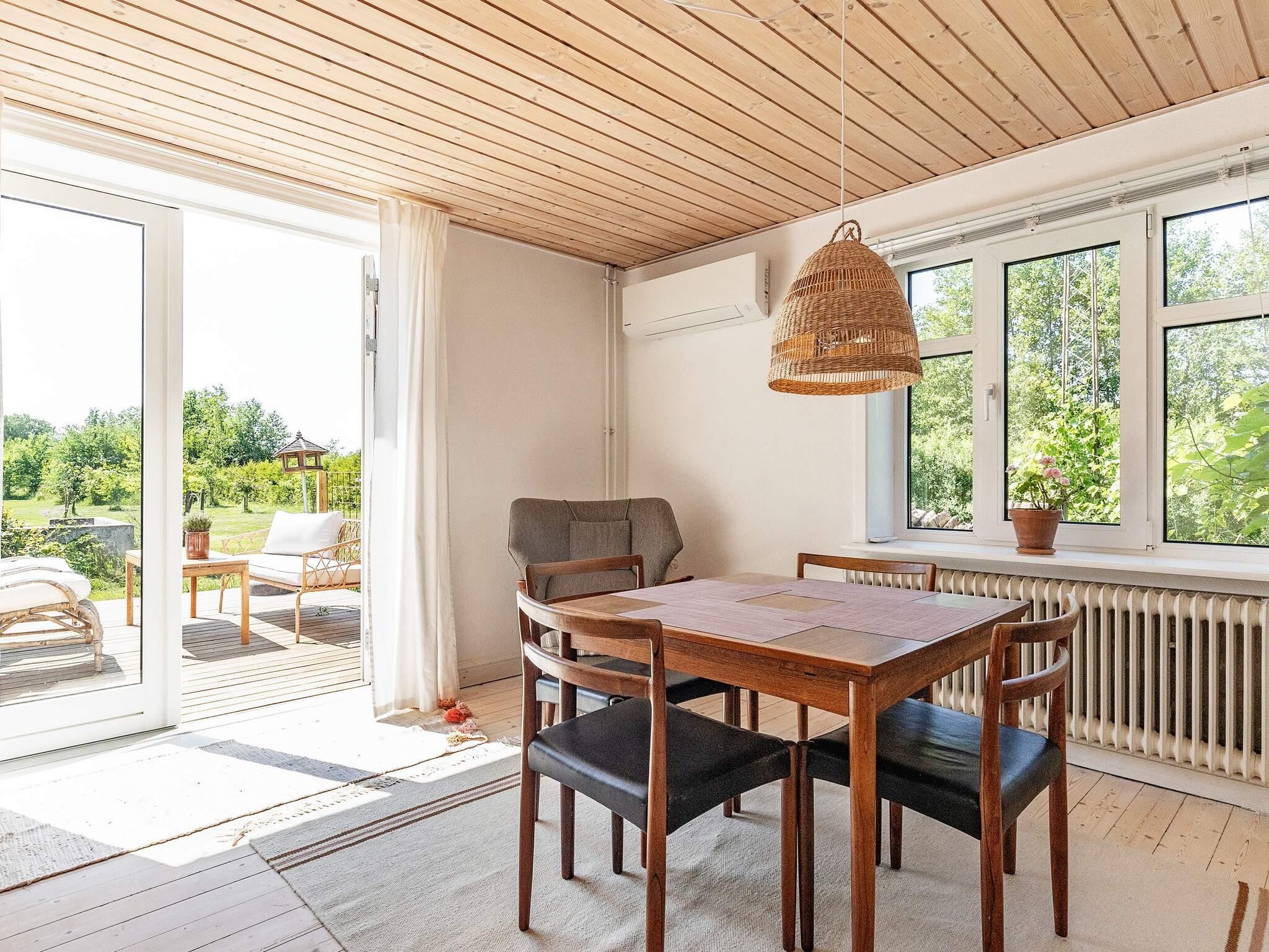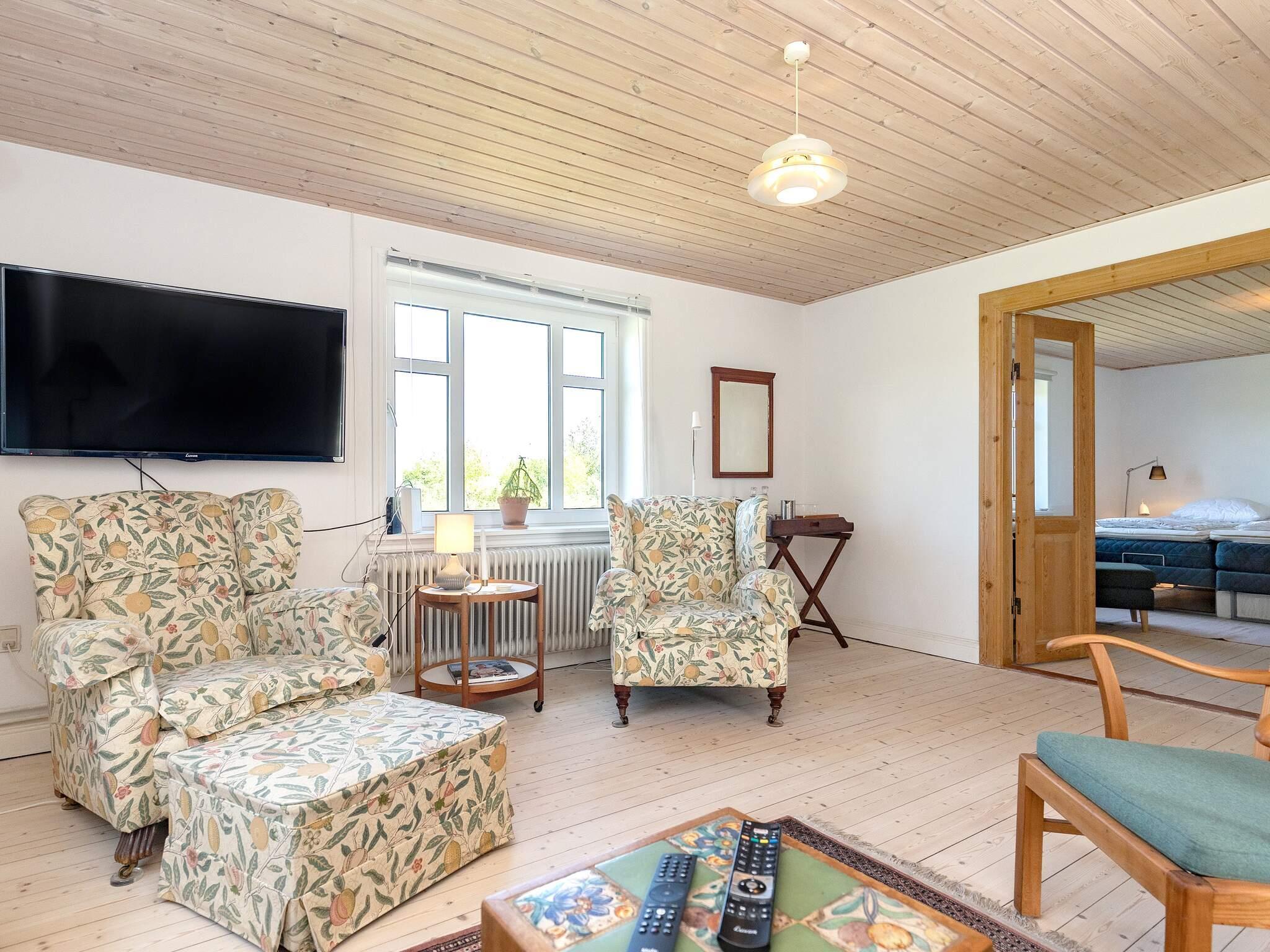 Ejendommen omfatter en stor have, der strækker sig ind i et skovområde bag huset, med en betydelig sø. Gæsterne kan nyde picnic, udendørs afslapning og se på dyrelivet, herunder fugle, harer, fasaner og hjorte. Lejligheden er bekvemt beliggende i gåafstand til populære lokale attraktioner som Storhaven, Krogbækgaard, Saltsyderiet, Café Blichfeld, Byrum og Rønnerne, der giver mulighed for at opleve øens natur, kultur og lokale charme.