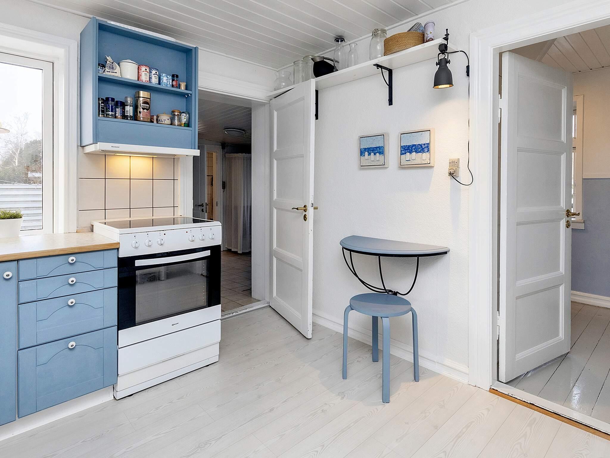 Sommerhuset indeholder en stor stue i åben forbindelse med køkkenet og med vinduer ud mod haven, som giver et godt lysindfald. Der er tre gode soveværelser samt badeværelse med brus, vaskemaskine og tørretumbler. Der er gode terrasser rundt om det meste af huset, som gør, det altid er muligt at finde læ og sol ved huset.