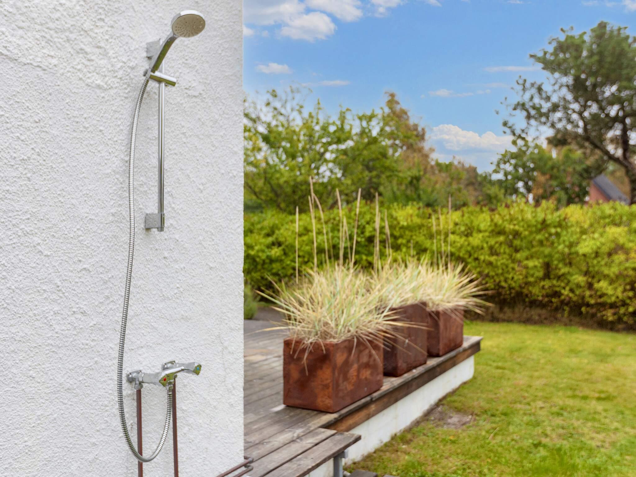 Efter en lang dag ved stranden vil I kunne nyde et forfriskende udendørs bad under husets udebruser. Indtrykkene fra naturen forstærkes, når I kan mærke vinden, høre fuglene synge og nyde udsigten til naturen mens sand og salt skylles af efter en tur ved havet.