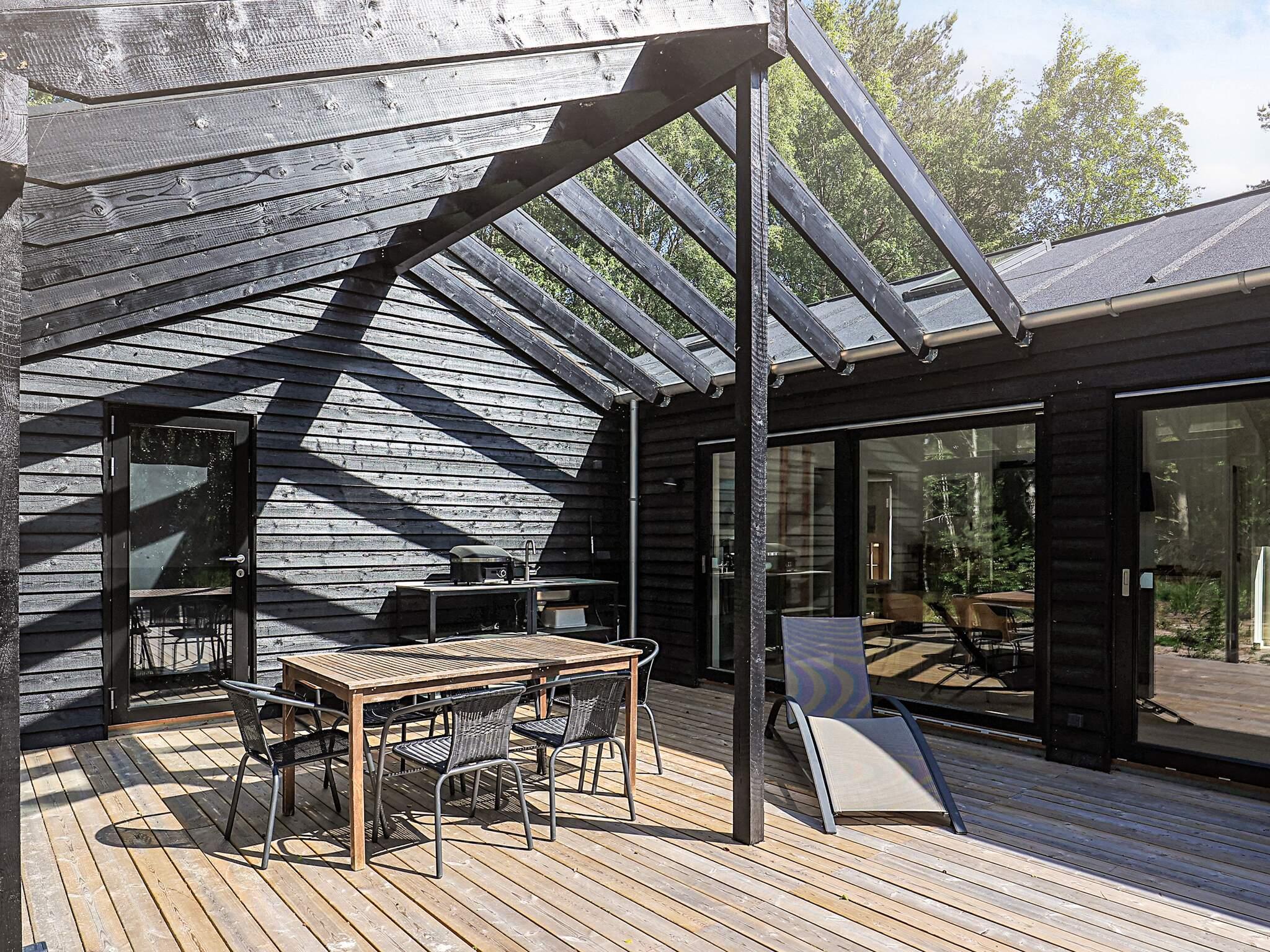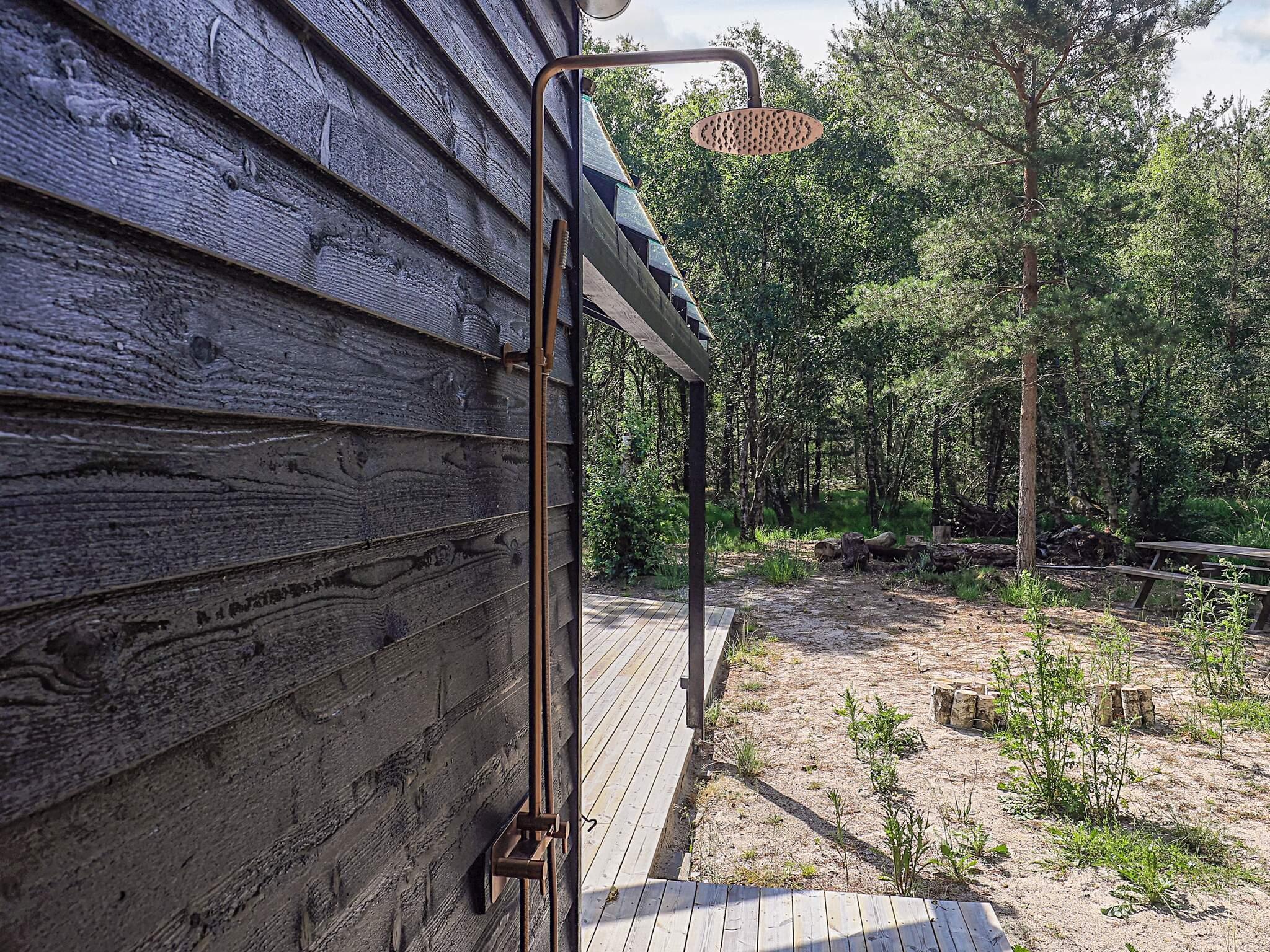 Husets udendørsareal byder på to terrasser, hvoraf den ene er overdækket. Der er også en praktisk udendørs bruser, et udekøkken med bord og vask, ideel til rengøring af svampe eller fisk, du har fanget, og en ladestation til en elbil. Beplantningen på ejendommen gør den til det ideelle sted at nyde en sommeraften på terrassen uden at blive set af naboer eller forbipasserende.