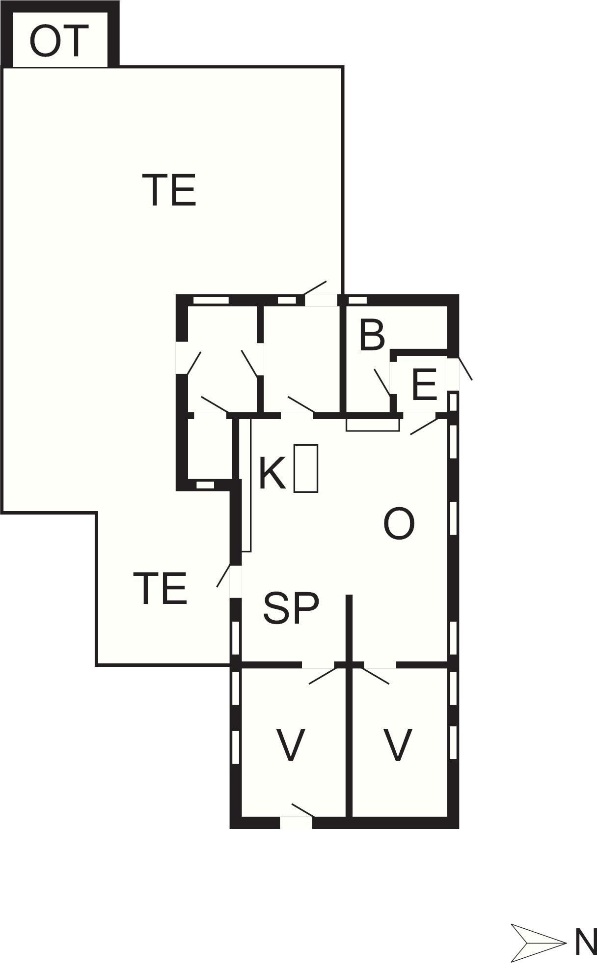 Ejendommen er opdelt i 2 lejligheder i hver sin længe med særskilte indgange og terrasser, så man kan nyde sin ferie uforstyrret, eller tage afsted to familier i hver sin afdeling.