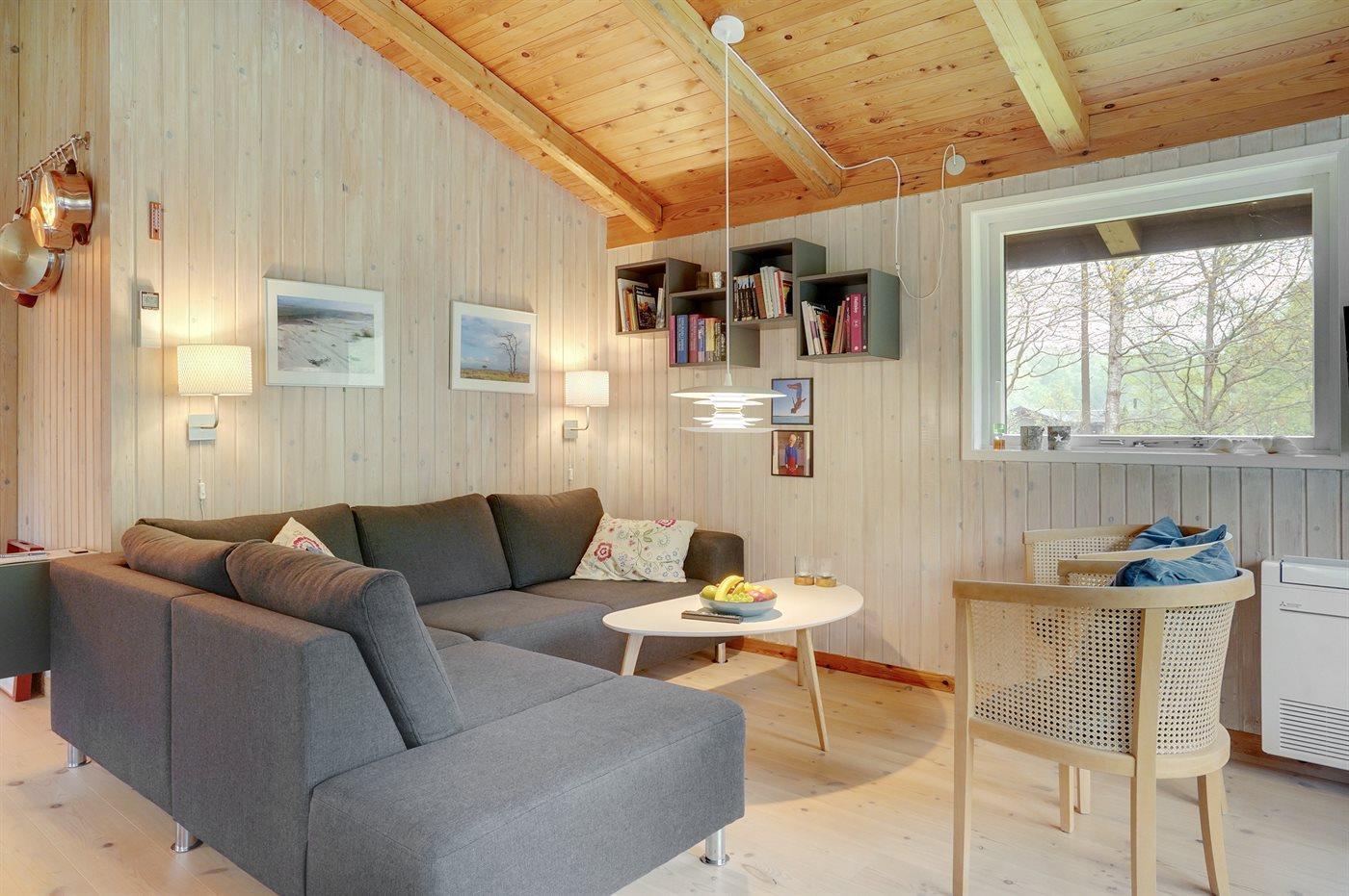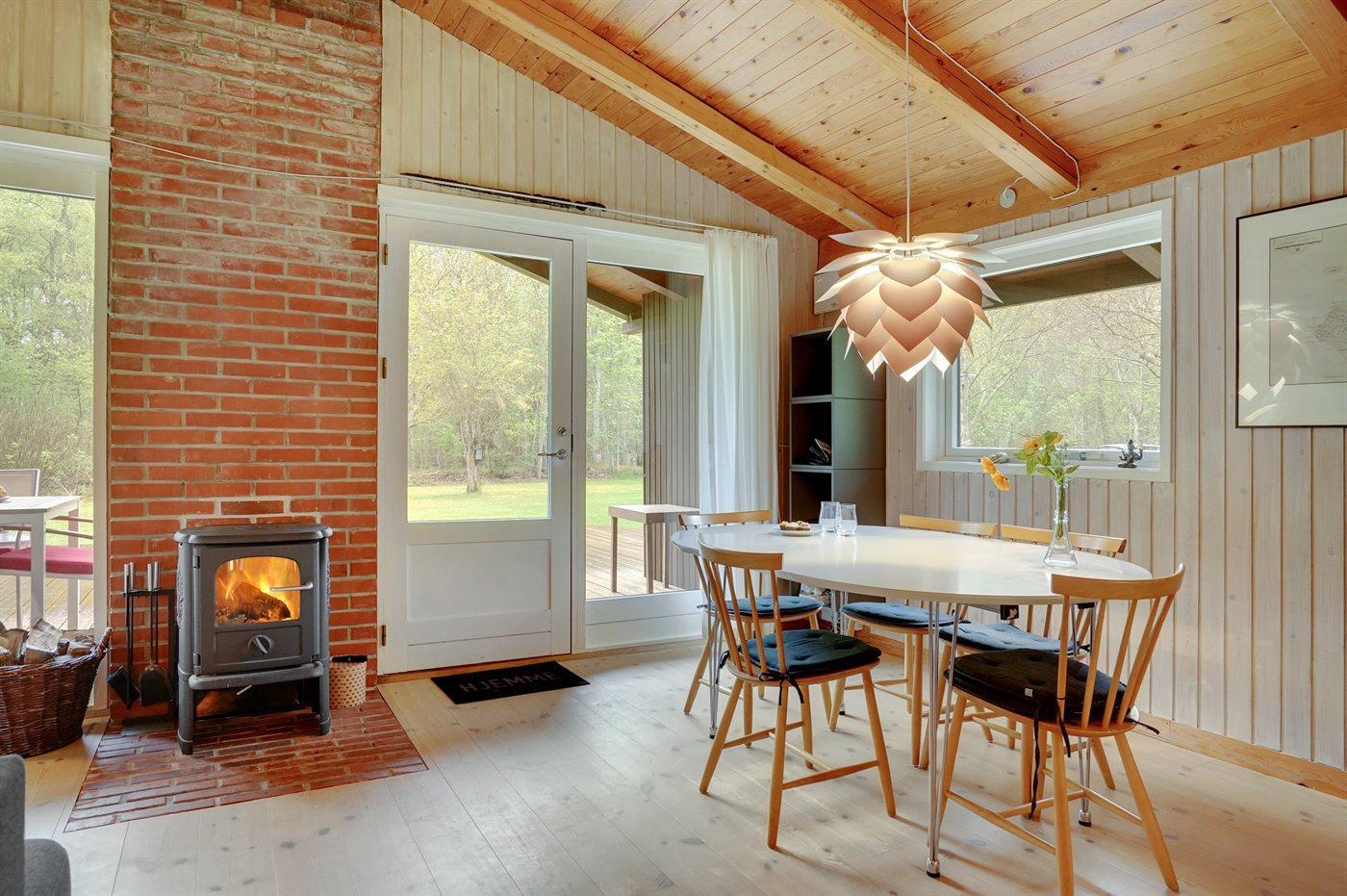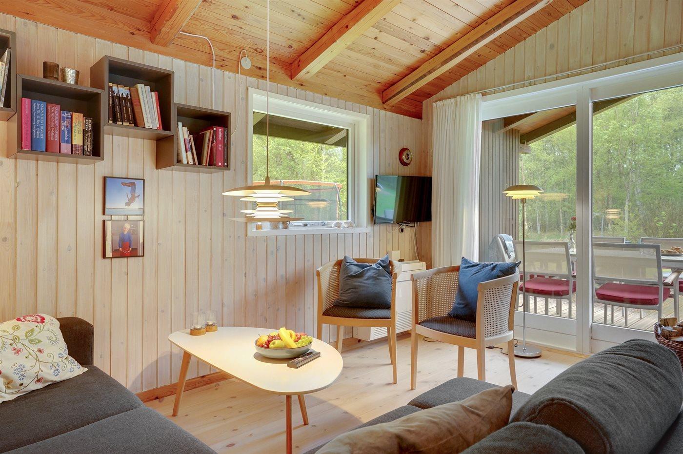 På en stor og dejlig naturgrund ligger dette charmerende sommerhus med moderne indrettet stue og køkken-alrum, som er husets hjerte.