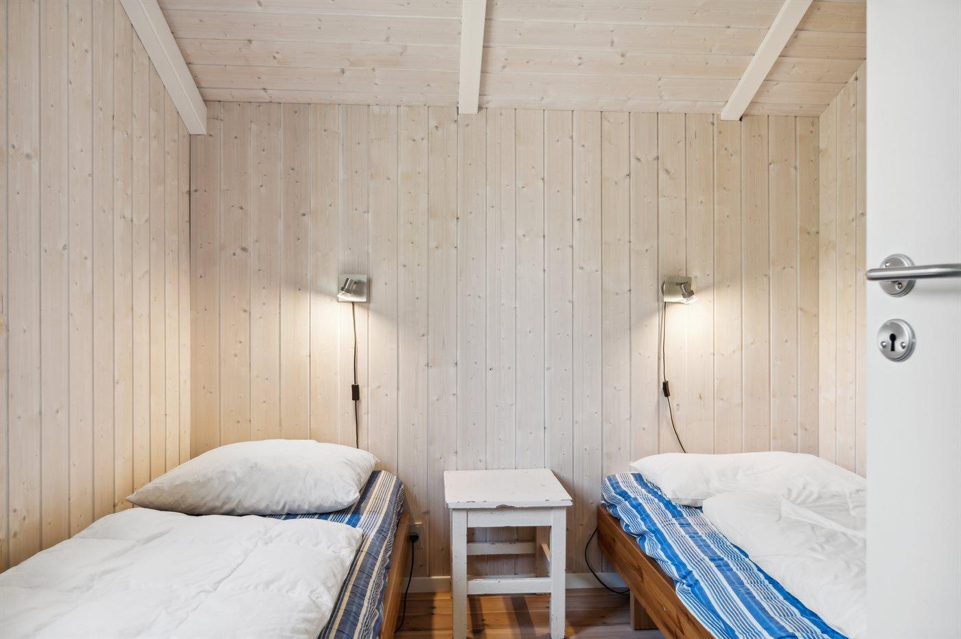 Der er i alt 3 soveværelser. Sovepladserne fordeler sig på: 2 sovepladser i dobbeltseng. 3 sovepladser i enkeltsenge.