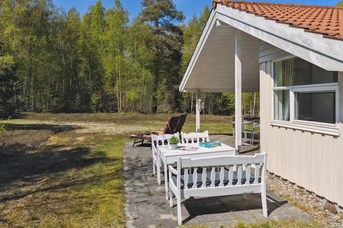 Dejligt lyst feriehus, med personlig, pæn indretning. Beliggende ugenert i rolige naturskønne omgivelser. Grunden er meget solrig og med