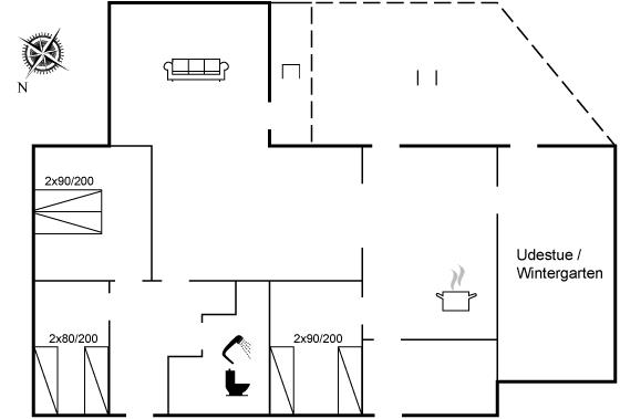Der er i alt 3 soveværelser. Sovepladserne fordeler sig på: 4 sovepladser i enkeltsenge.2 sovepladser i elevationssenge.