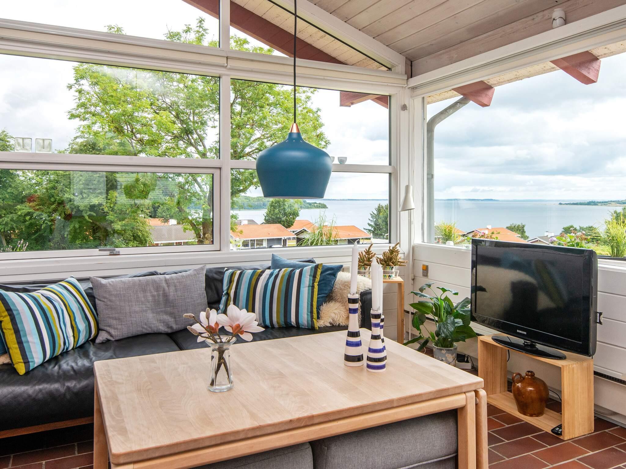 Og: Terrasse, overd. terrasse, el-varme, luft/luft varmepumpe, havegrill, naturgrund, komfortabel møblering, panoramaudsigt over vand, ikke-ryger hus