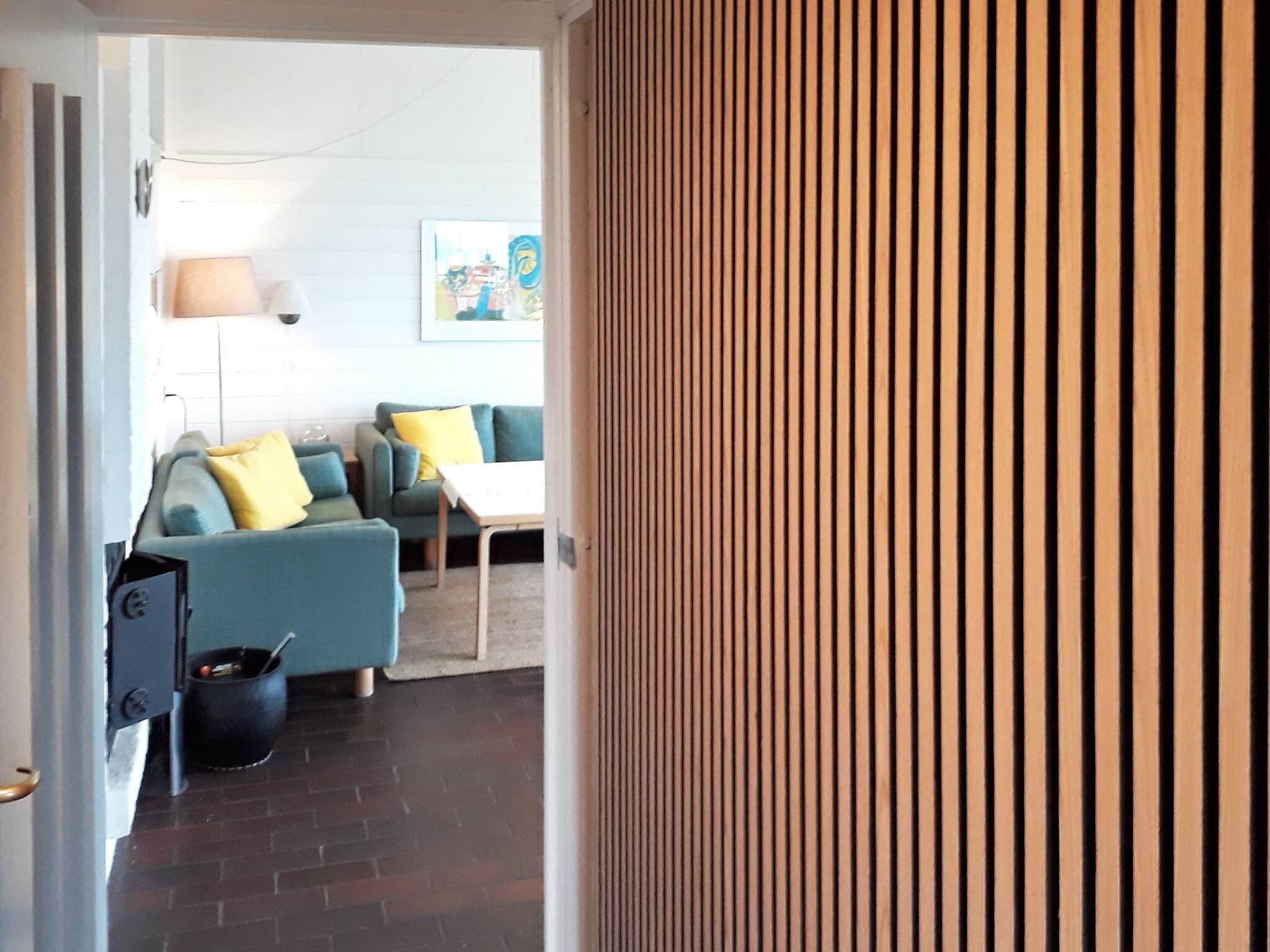 Det 70 m² store feriehus har to soveværelser og en hems under det skrå tag. Den er udstyret med en klimavenlig varmepumpe og en hyggelig brændeovn. Varmepumpen kan bekvemt også bruges som klimaanlæg på varme sommerdage.