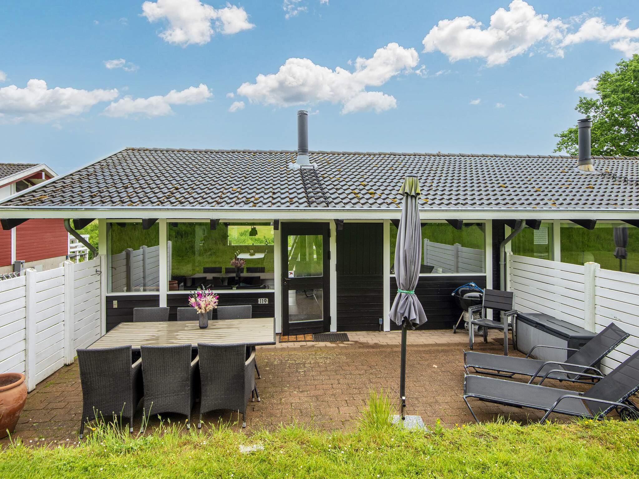 I har gratis og fri adgang til alle forlystelser ved feriecenteret. Her kan I f.eks. i hele højsæsonen benytte poolen som er til fri afbenyttelse og åben i perioden 15.05. – 15.09. Ved poolen er der grill og café. Her finder I også f.eks. beachvolley, minigolf, petanque og hoppe pude. Sommerhuset har 2 terrasser. I kan nyde morgensolen og udsigten over vandet og området fra den ene og eftermiddagskaffen og aftensmaden fra den anden.