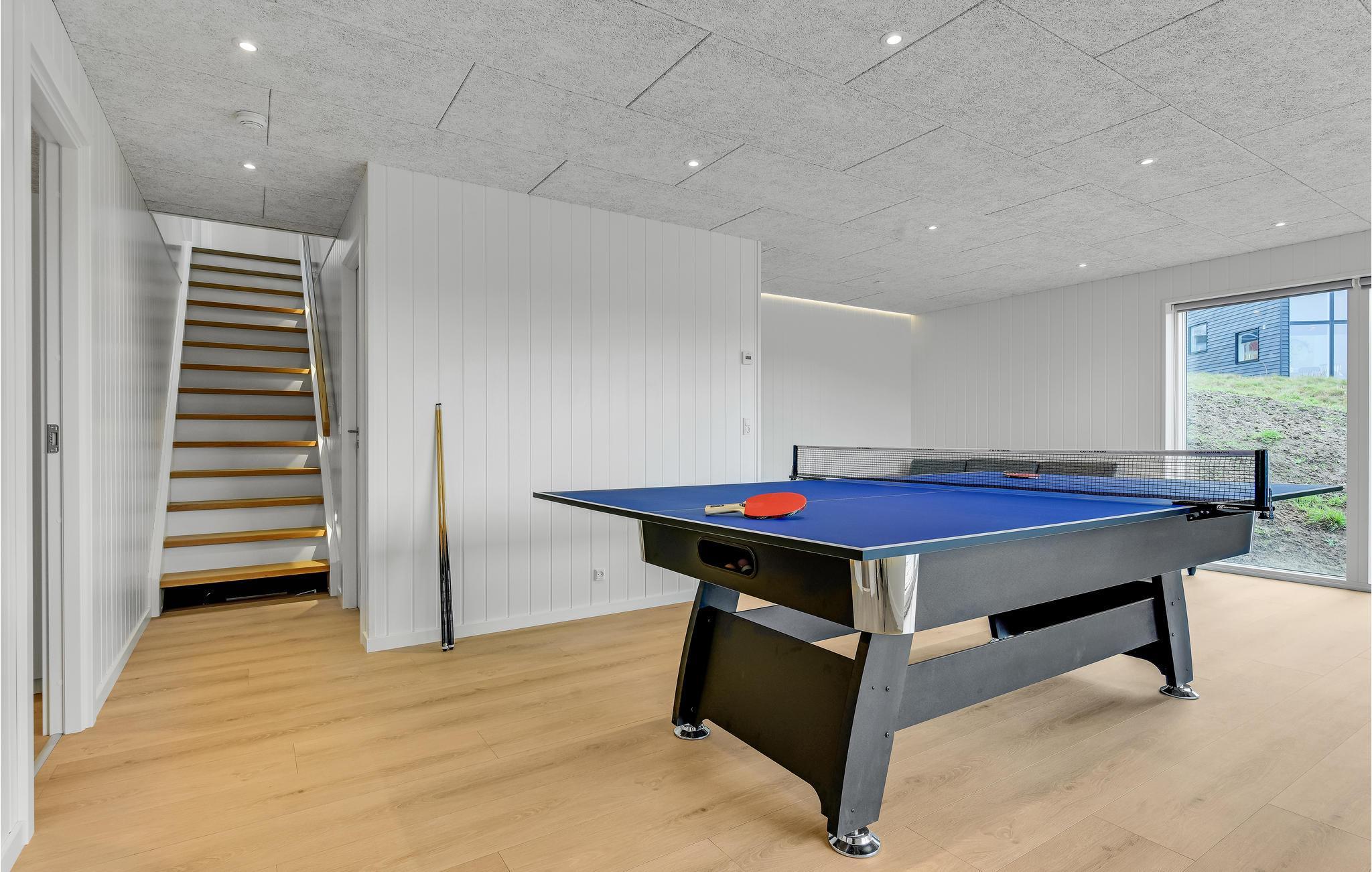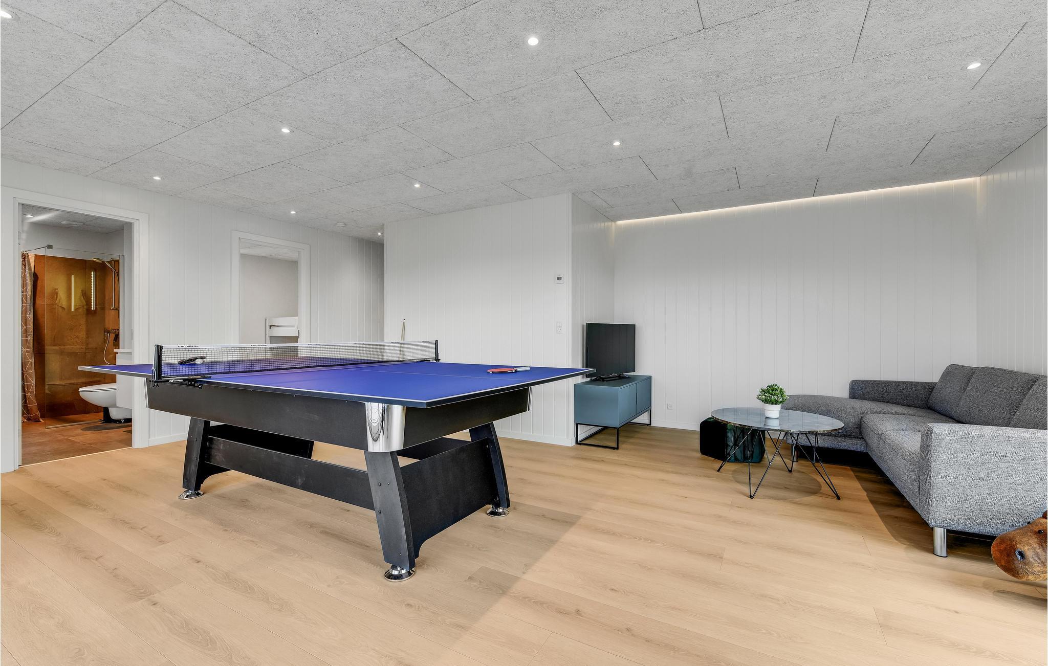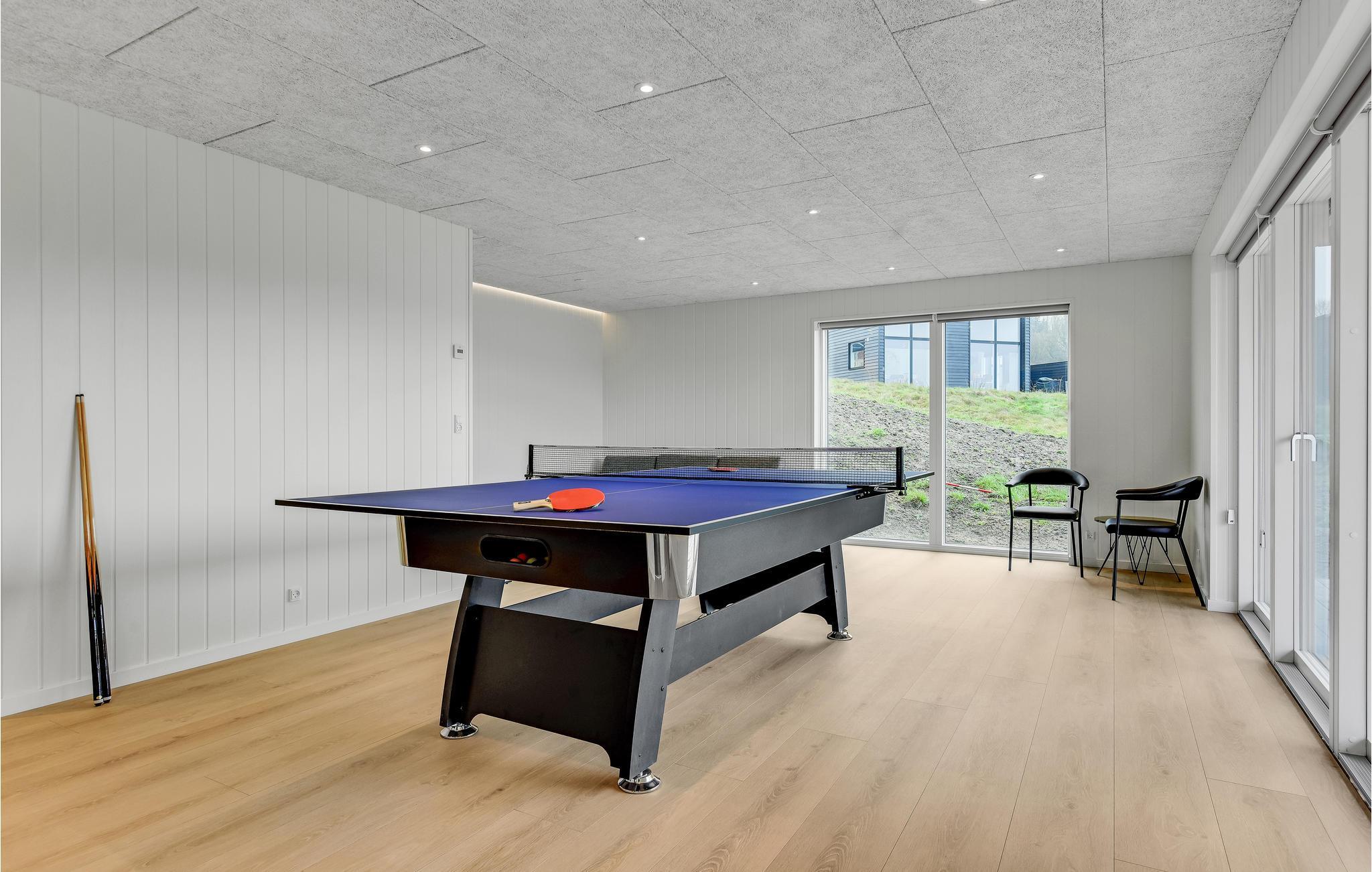 Velkommen til dette ferieparadis nordøst for Aabenraa ved Løjt Strand. Huset er rummeligt, stilfuldt og skaber perfekte rammer om et sjovt og afslappende ophold. Det har et moderne, veludstyret køkken, der indbyder til at tilberede lækre feriemåltider, som derefter kan nydes ved den store spiseplads eller ude på terrassen. I opholdsstuen finder I et stort, komfortabelt sofaarrangement, hvor I kan flade ud foran fladskærmen om aftenen. I kan også konkurrere i henholdsvis billiard og bordtennis - taberen tager opvasken?