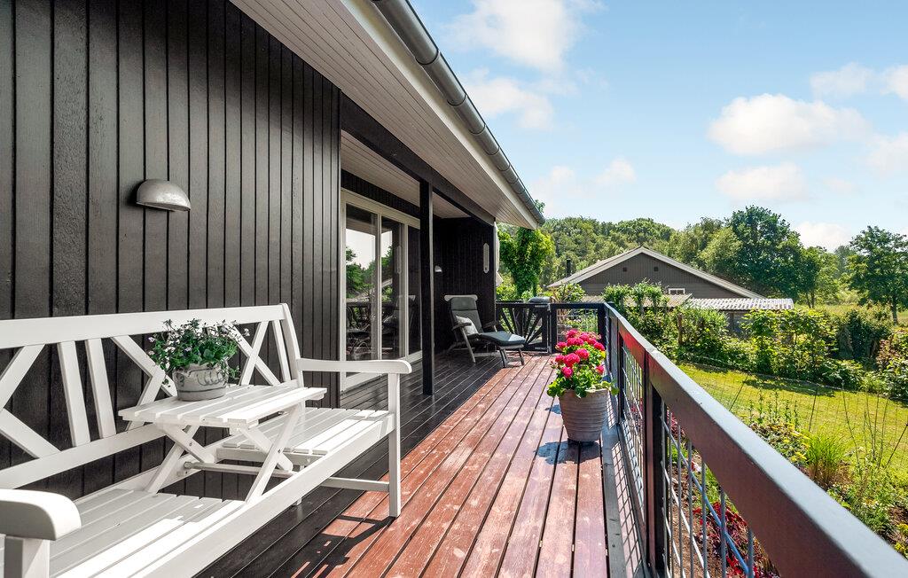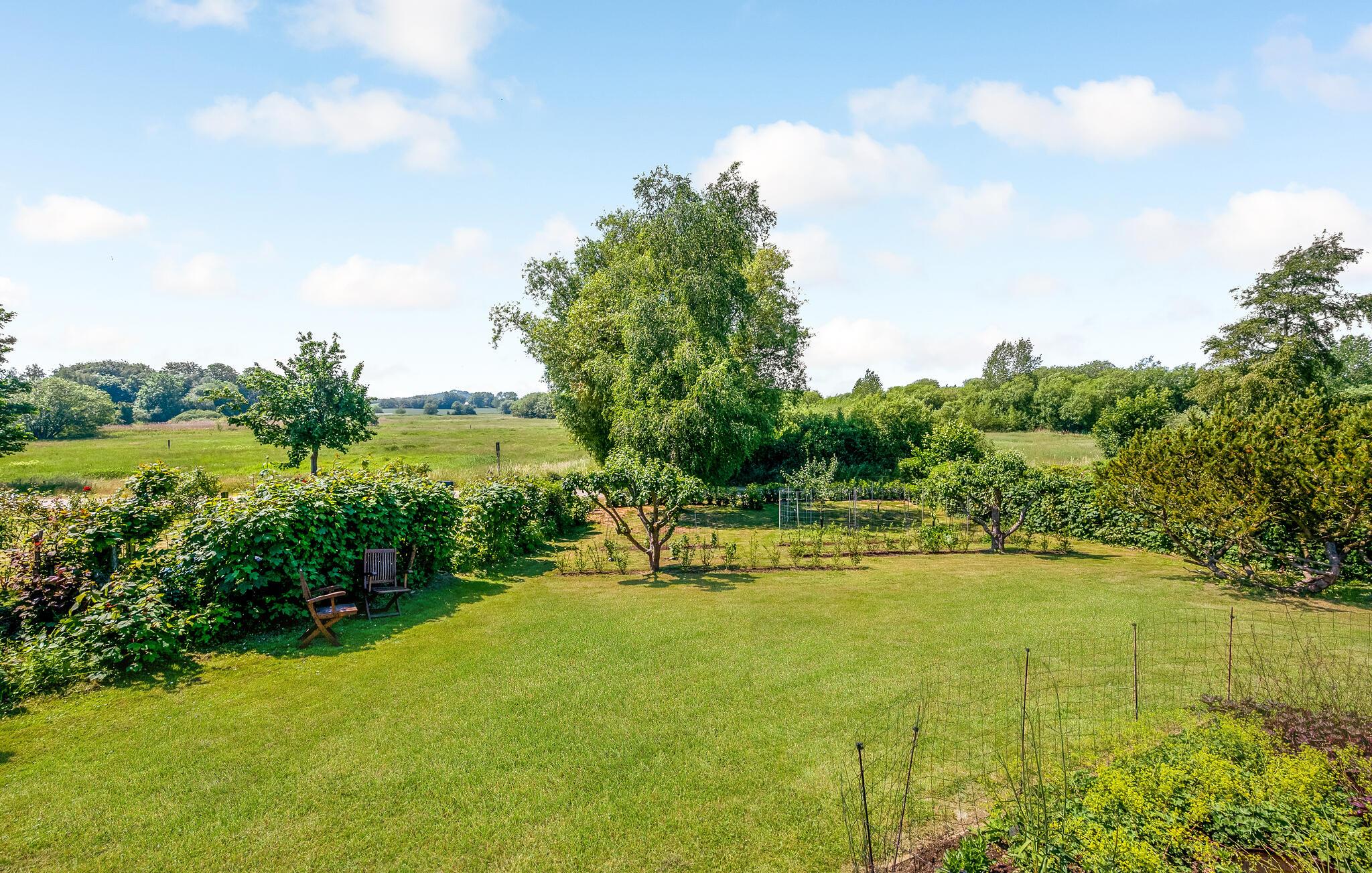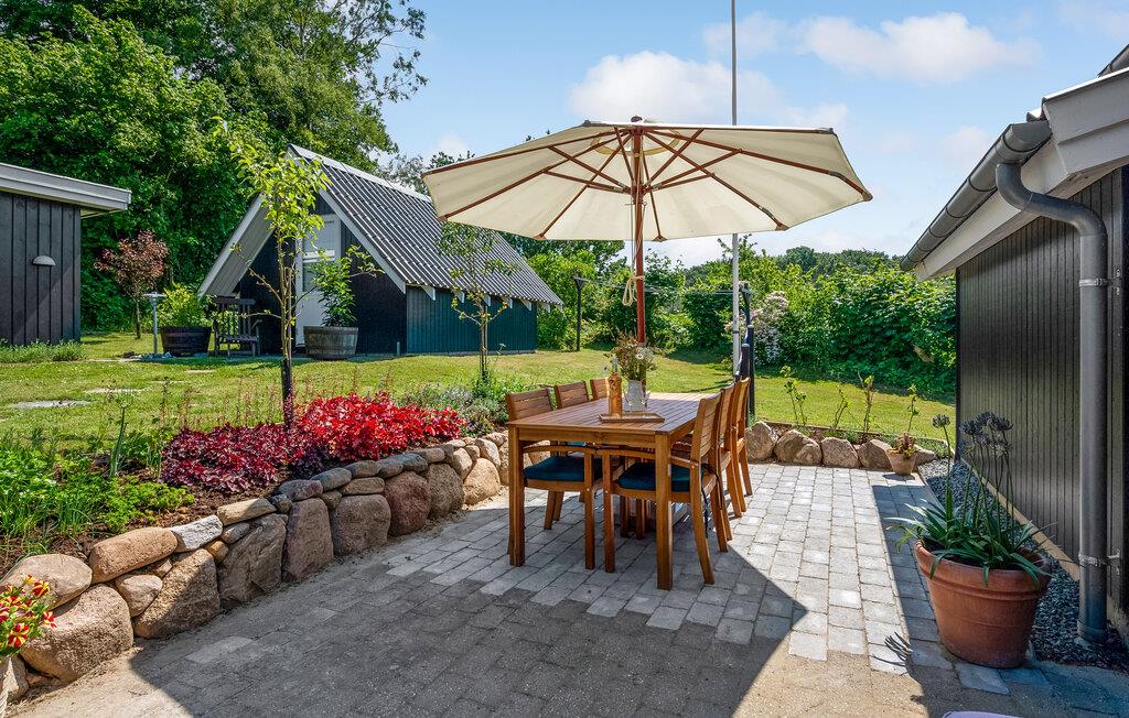 Der er flere terrasser på grunden, hvor I kan læse og nyde et glas vin. Stranden og badebroen når I efter få minutters gang, perfekt til en dejlig stranddag eller et hurtigt morgendyp.