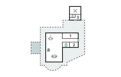 Badeværelse (nr. 1) - WC. Varmt og koldt vand. Bruser