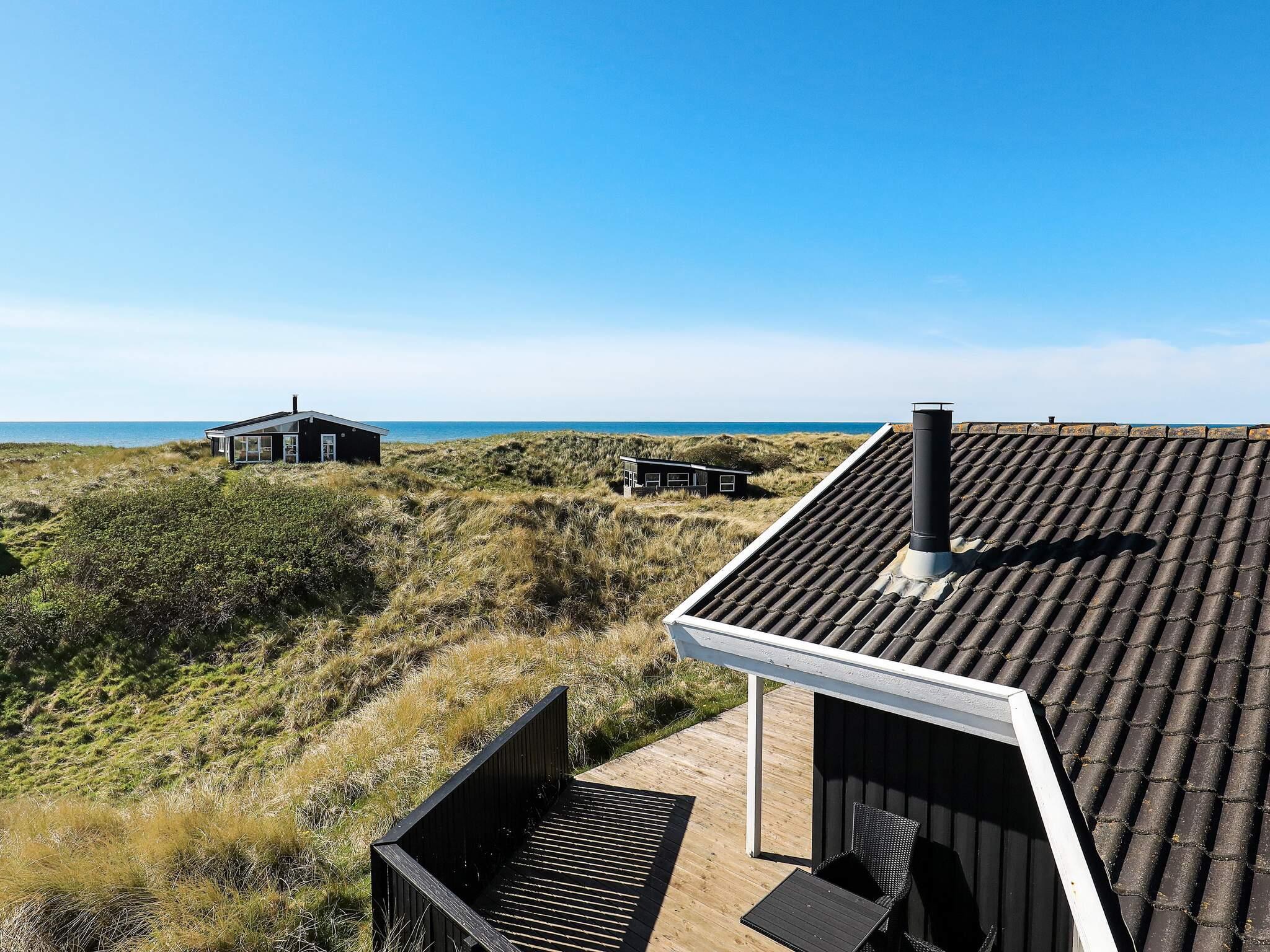 På toppen af en kuperet klitgrund ligger dette kvalitetshus med panoramaudsigt over Vesterhavet fra bænken på grunden og et lille havkig fra høj på grunden. Huset er indrettet i moderne, dansk stil med køkken/opholdsrum i åben forbindelse og med stort terrasseareal mod både øst, syd og vest. Stuen er meget rummelig og møblementet i høj kvalitet og uhyre smagfuldt sammensat. Der er ca. 100 m til hav og strand og ca. 500 m til Løkken by, der tilbyder sine feriegæster en stor mangfoldighed af aktivitets-, spise- og shoppingmuligheder. Fra husets p-plads er der ca. 20 trappetrin til husets indgang. Udlejes ikke til ungdoms- og håndværkergrupper.