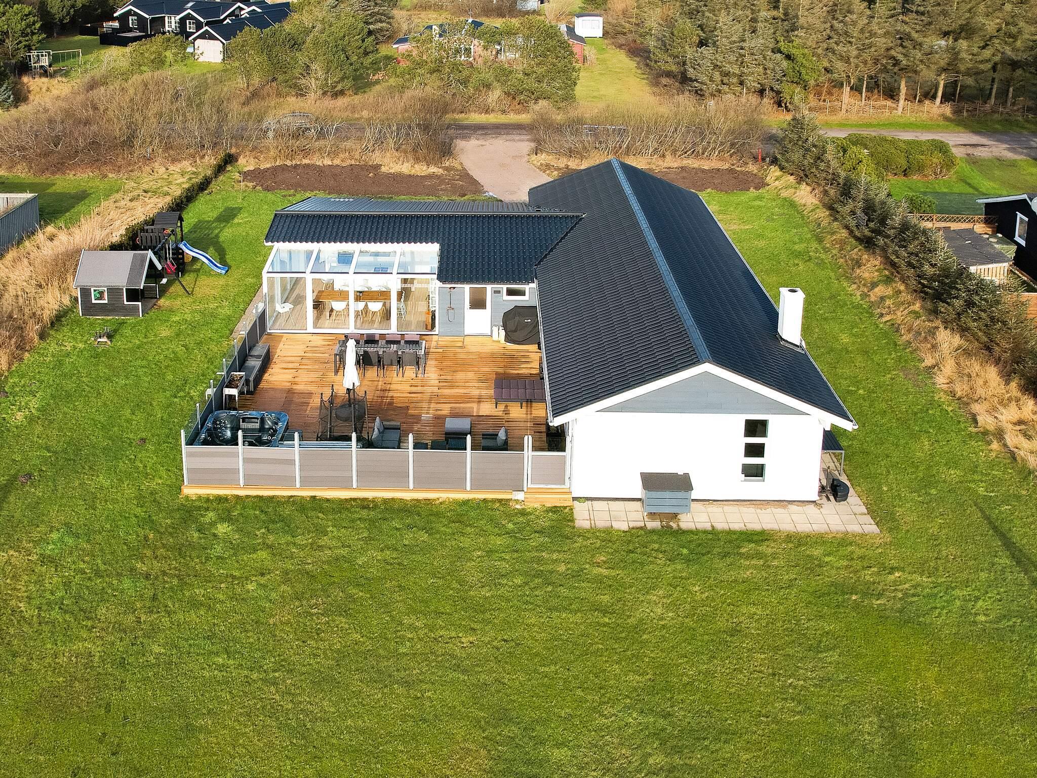 Feriehuset er totalrenoveret i 2019/2020 og er beliggende på en 2000 m2 stor grund med plads til leg og boldspil. Der er fodboldmål, en vippe, et legehus og et legetårn med rutsjebane.