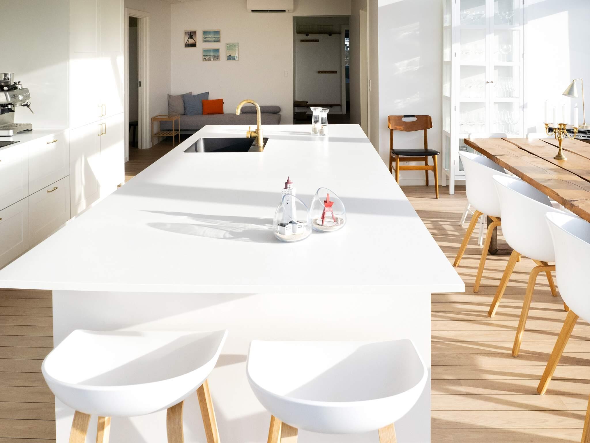 I hele huset er der lette Troldtekt lofter, som er med til at give en god akustik i huset.
