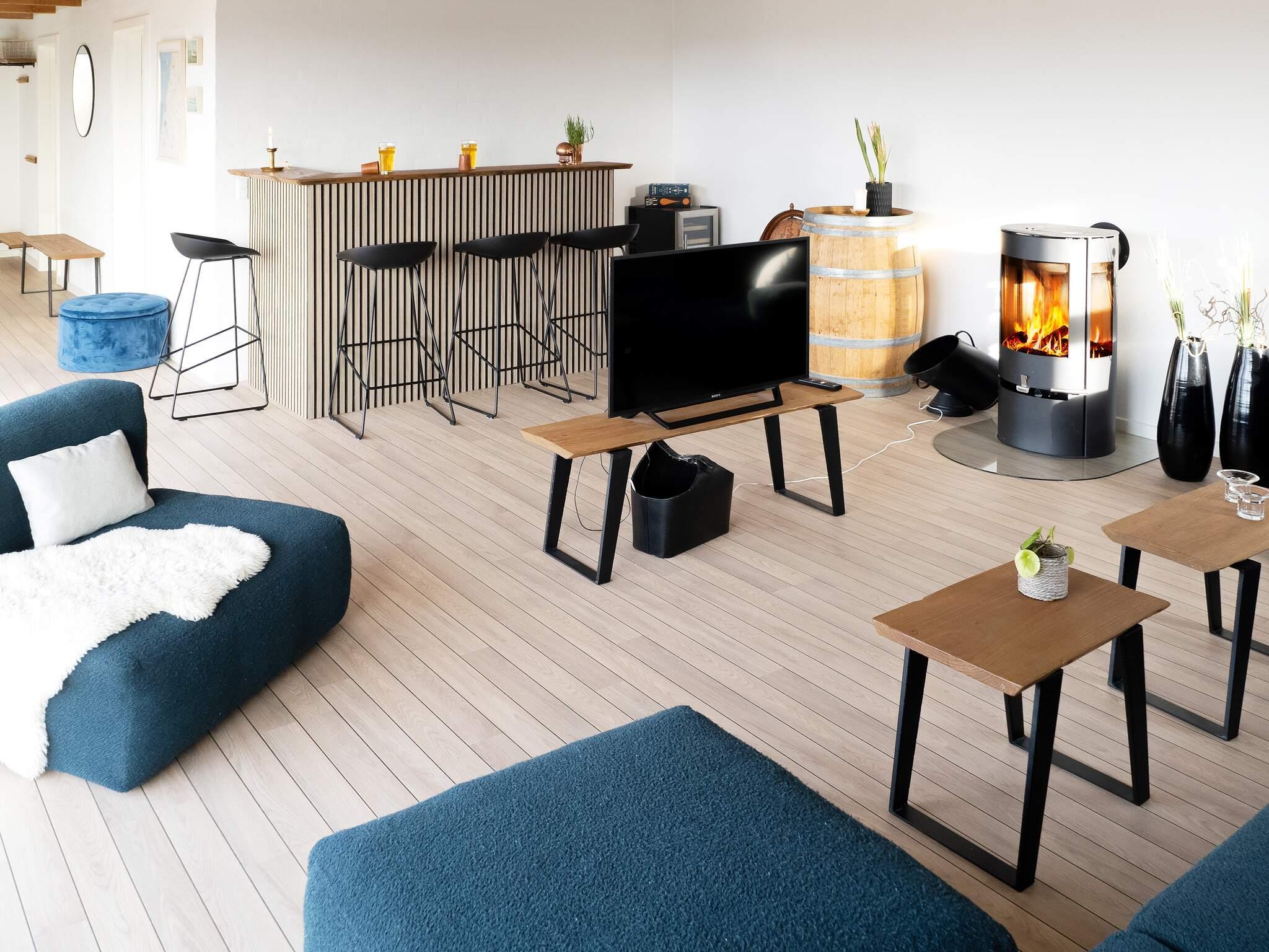 1 Opholdsstue: Brændeovn, Chromecast, tv