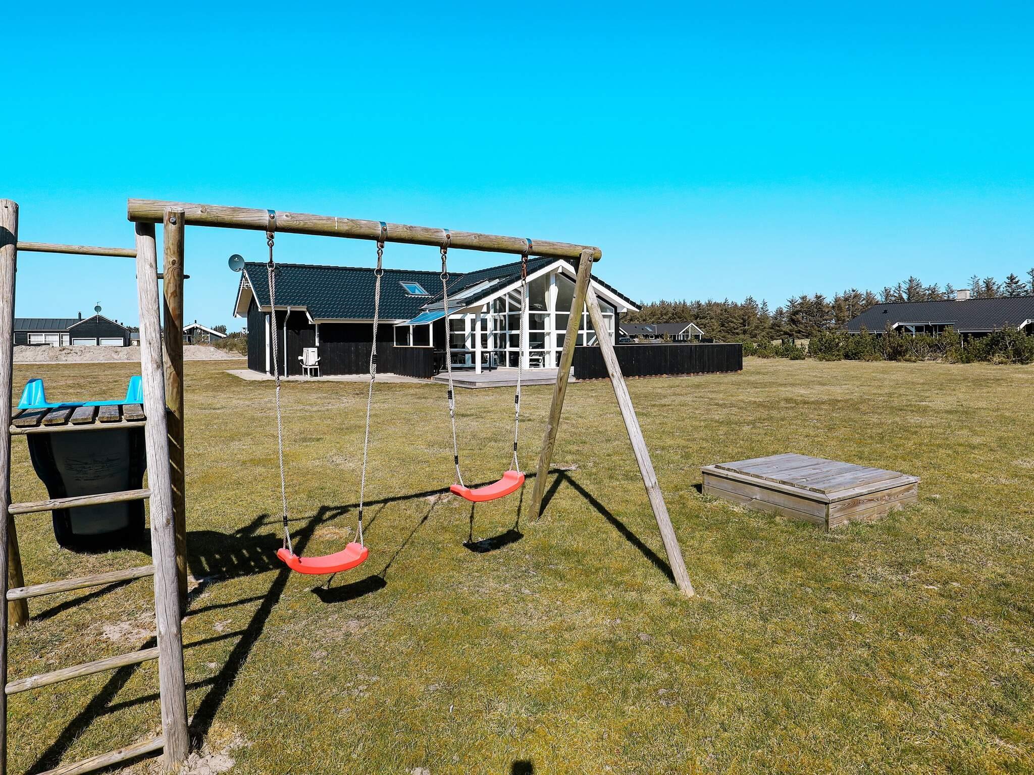 Arkitekttegnet sommerhus med spabad beliggende i det attraktive Løkken Syd med gåafstand til Løkken by. Huset indeholder stue i åben forbindelse med køkkenet, fire soveværelser, hems, badeværelse med bruseniche, gulvvarme og spabad, gæstetoilet samt entre med vaskesøjle. Huset er indrettet med moderne møblement i dansk stil og dertil afstemt udsmykning. Der er enestående lysindfald og helt optimal indretning. Der er 13 m² overdækket terrasse og stort åbent terrasseareal. En del af den syd/vestvendte terrasse er forsynet med glas, så det er muligt at nyde udsigten og samtidig være i sol og i læ for vestenvinden. Grunden er en åben, plan naturgrund. Til børnene er der opsat gynger og sandkasse. Huset er forsynet med luft/luft varmepumpe, så der kan forventes små udgifter til opvarmning. Udlejes ikke til ungdomsgrupper.