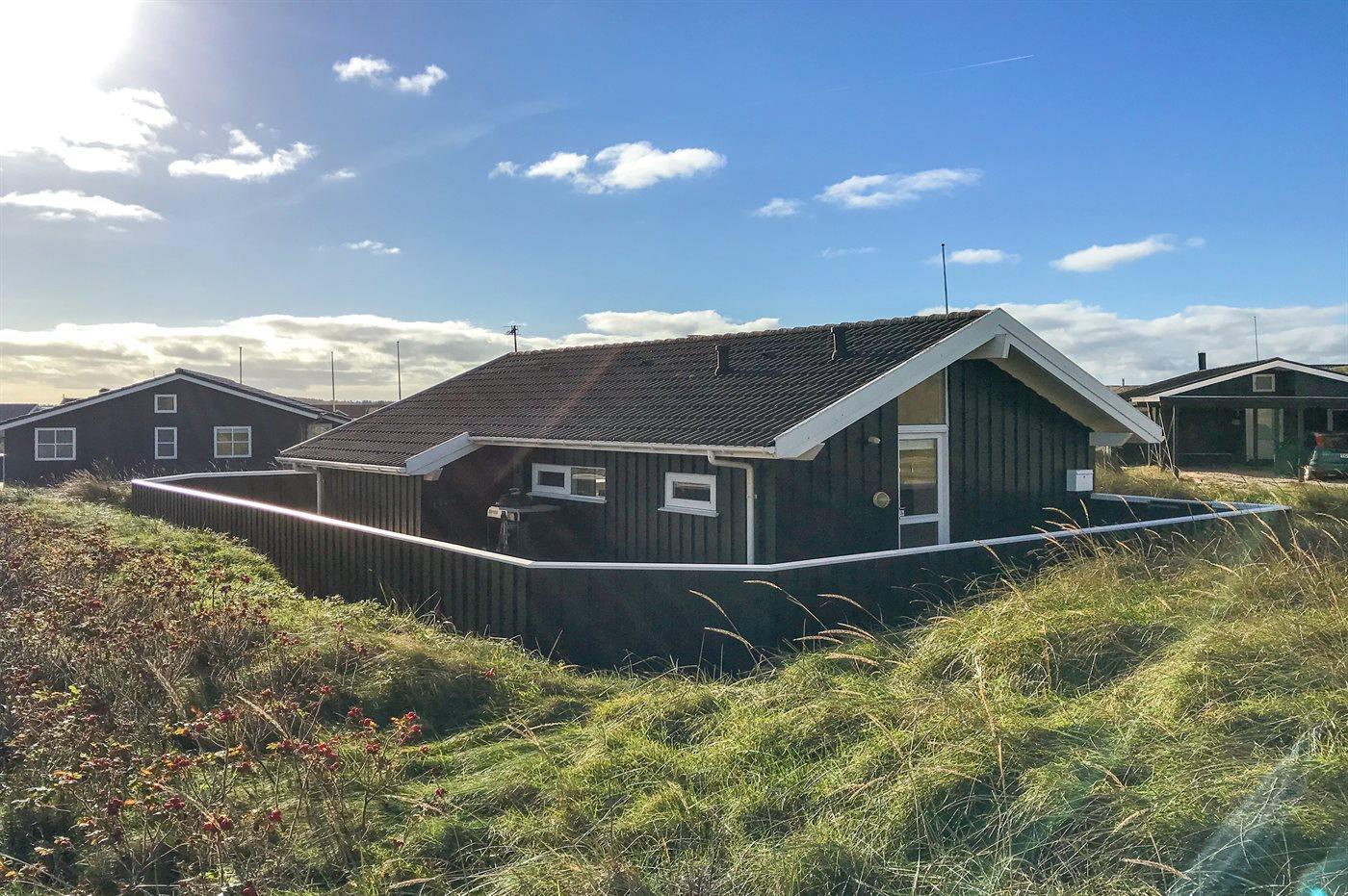 Ferieboligen er beliggende på en 1500 m² stor klitgrund. Der er 100 m til havet. Nærmeste forretning er beliggende i en afstand af 800 m. Til ferieboligen hører 80 m² terrasseareal. Desuden er der 6 m² overdækket terrasse. Parkering ved ferieboligen.