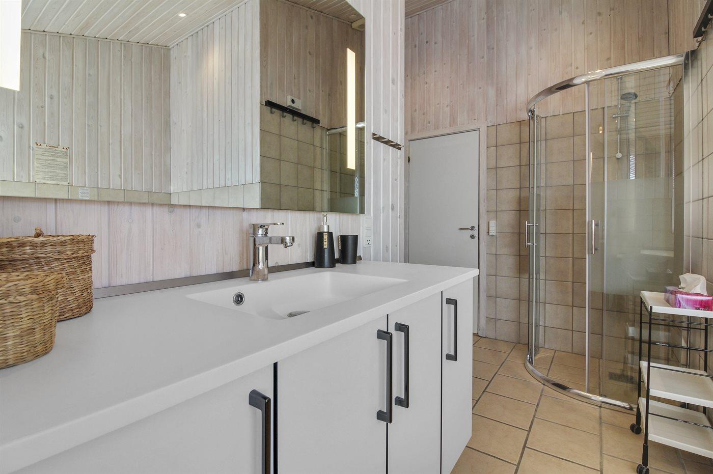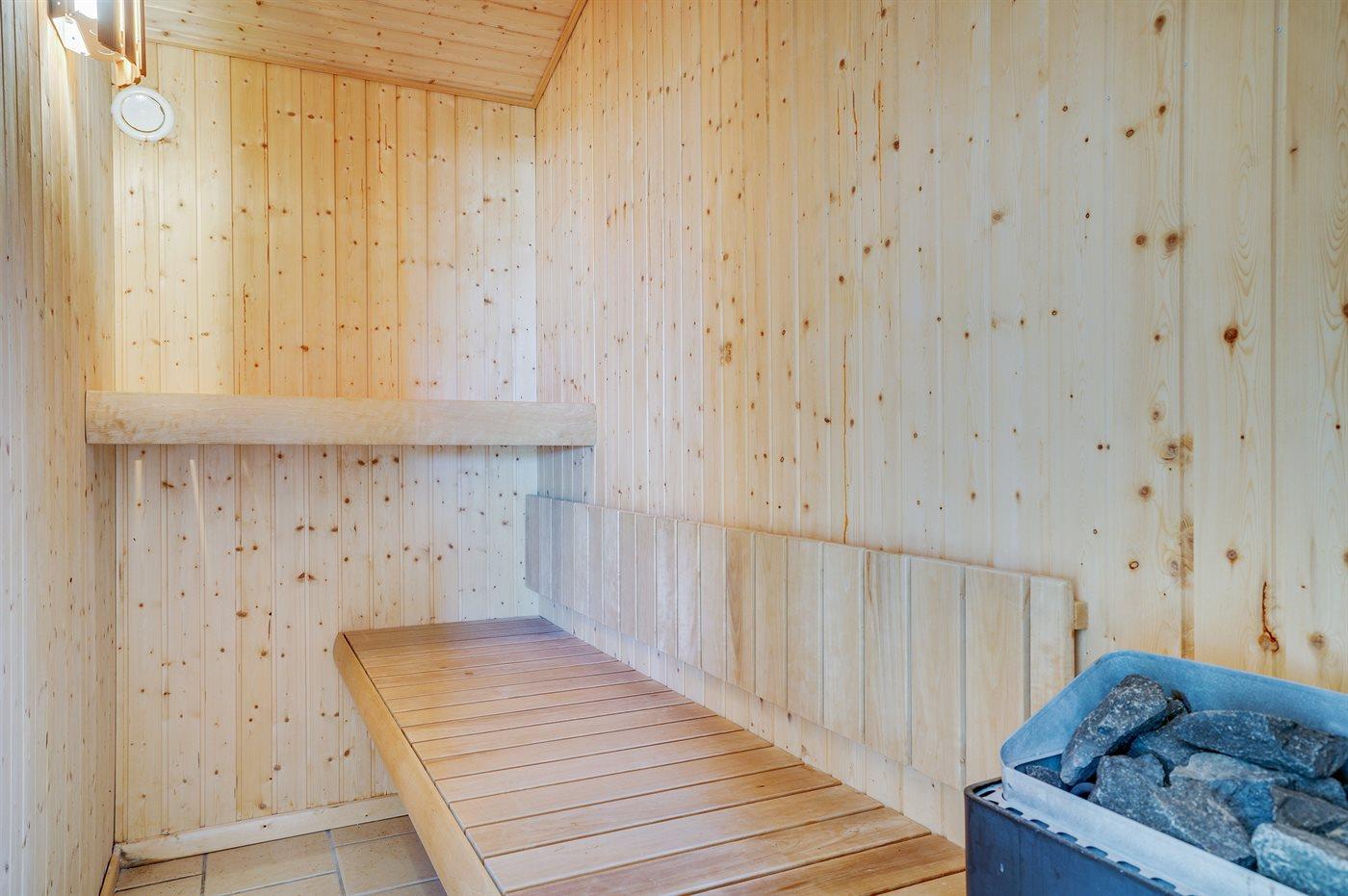 Der er 1 badeværelse med bruseniche og 2 toiletter, heraf 1 gæstetoilet. Der er gulvvarme på 1 badeværelse. I saunaen er der mulighed for afslapning.