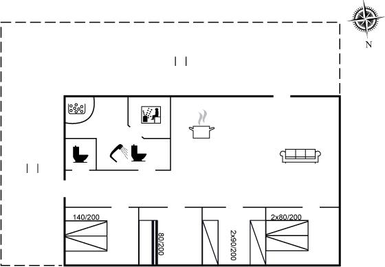 Der er i alt 4 soveværelser. Sovepladserne fordeler sig på: 4 sovepladser i dobbeltsenge. 2 sovepladser i enkeltsenge. 2 sovepladser i køjeseng. Derudover er der 1 stk. barneseng.