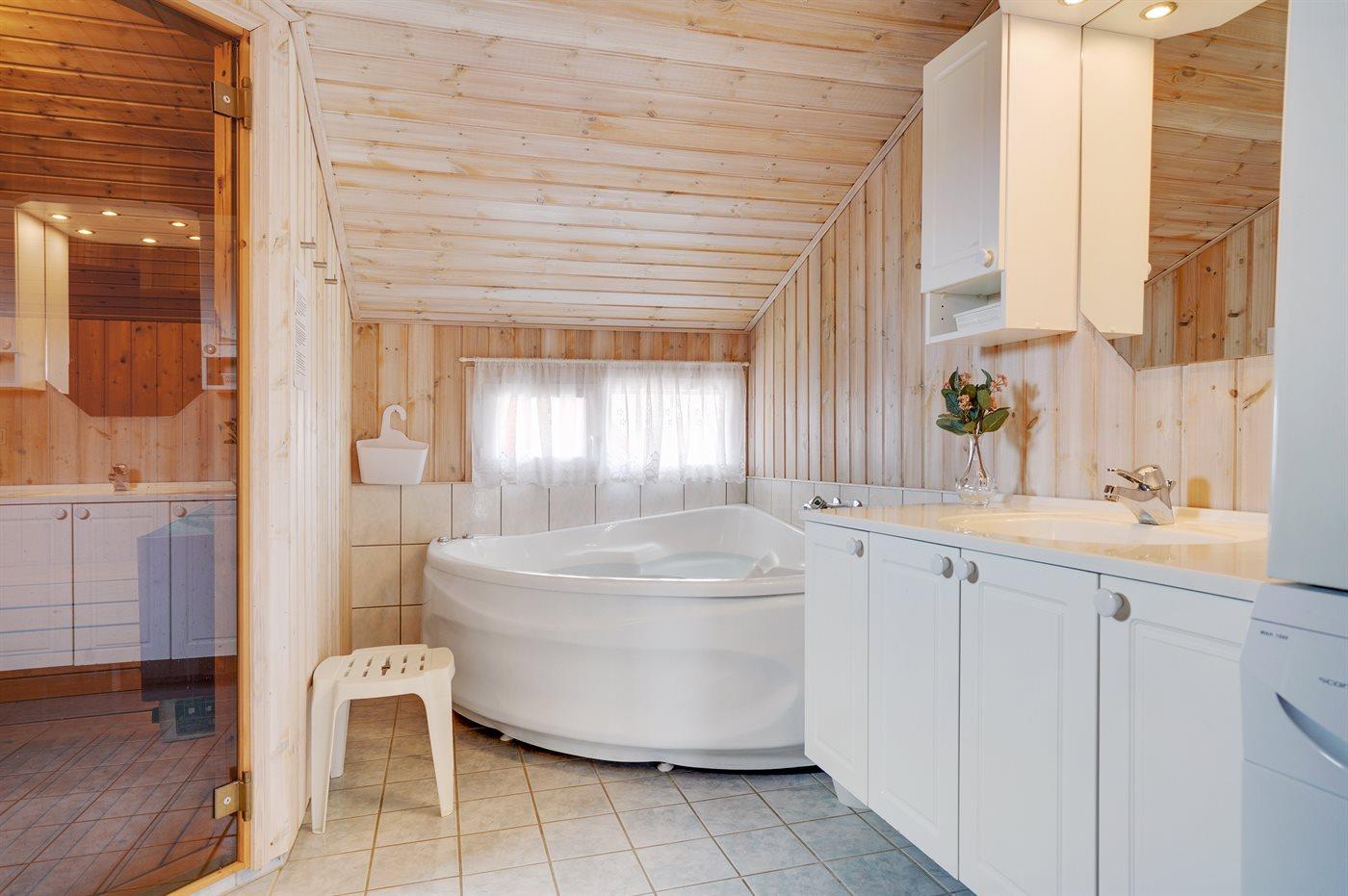Der er 1 badeværelse med bruseniche og 2 toiletter, heraf 1 gæstetoilet. Der er gulvvarme på 1 badeværelse. Der er gulvvarme på gæstetoilettet. I saunaen er der mulighed for afslapning.