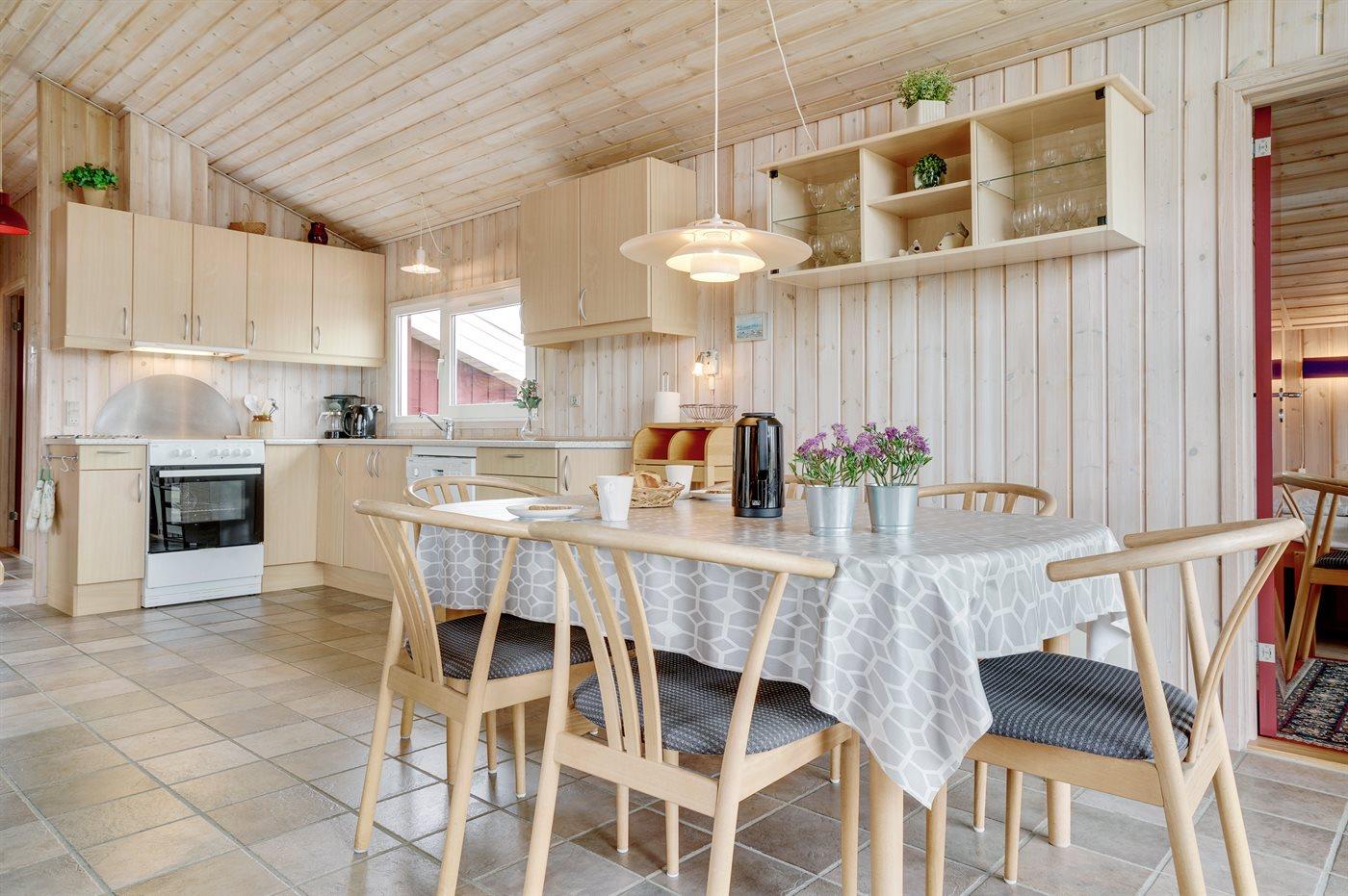 Sommerhuset egner sig til 6 personer. Ferieboligen er på 80 m² og er bygget i 2000. Det er tilladt at medbringe 1 husdyr. Der er gulvvarme i stuen. Der er gulvvarme i entréen. Ferieboligen har vaskemaskine. Tørretumbler. Frysekapacitet på 40 liter. Der er desuden brændeovn.