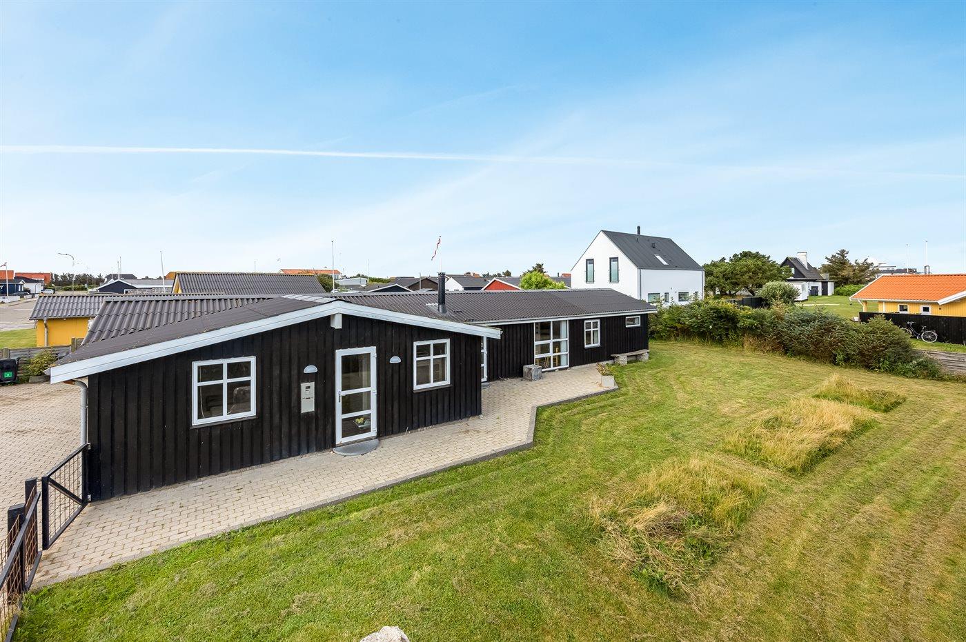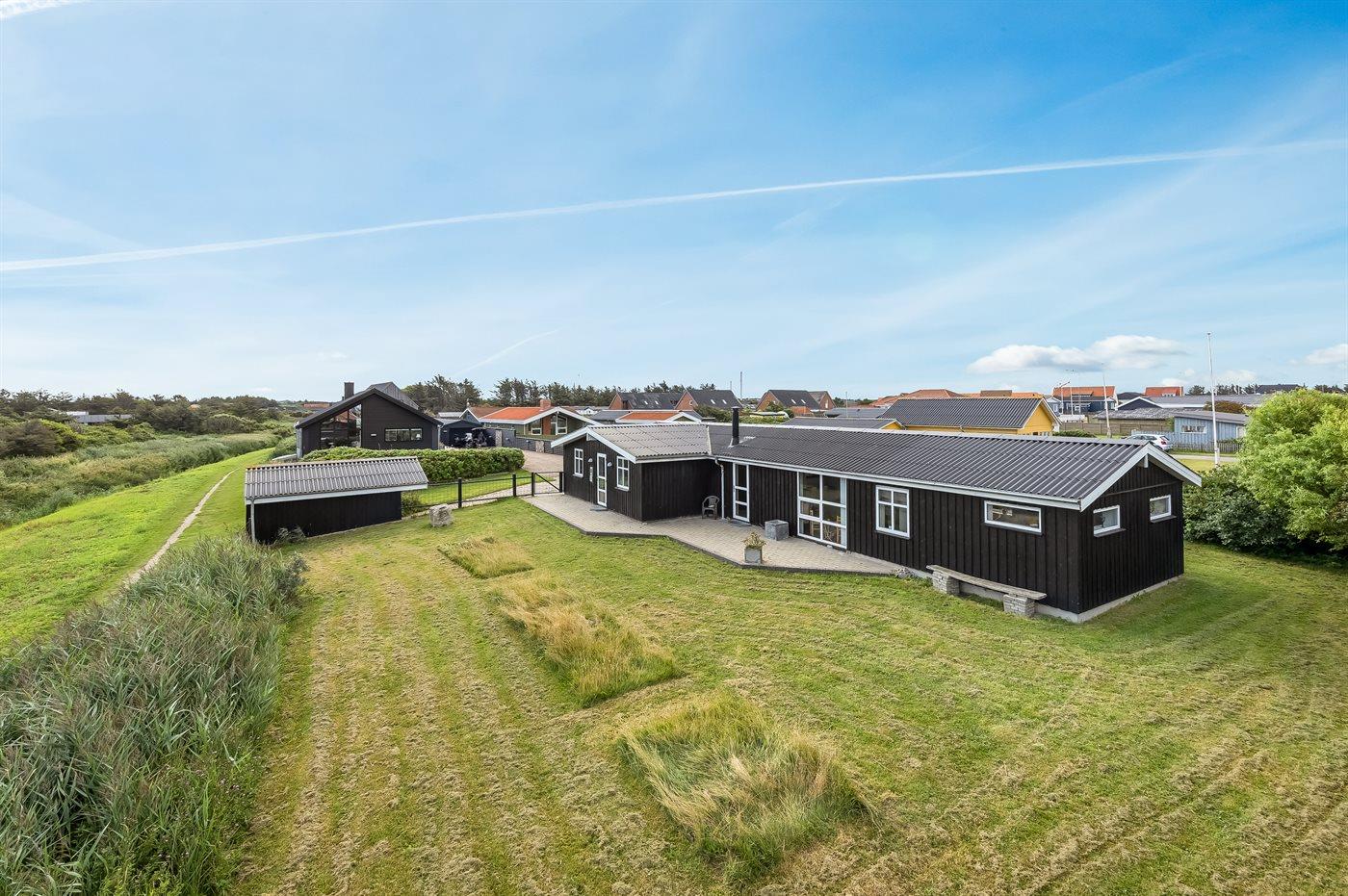 Ferieboligen er beliggende på en 870 m² stor naturgrund. Grunden er indhegnet. Der er 450 m til havet. Nærmeste forretning er beliggende i en afstand af 500 m. Til ferieboligen hører 86 m² terrasseareal. Udgang til solgård. Der er redskabsrum. Grill til rådighed. Der er carport til rådighed. Parkering ved ferieboligen.