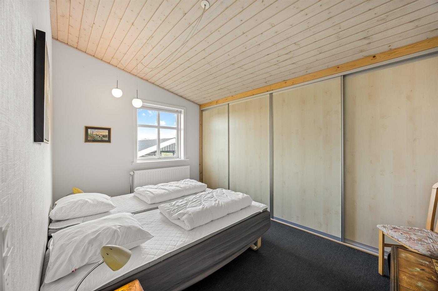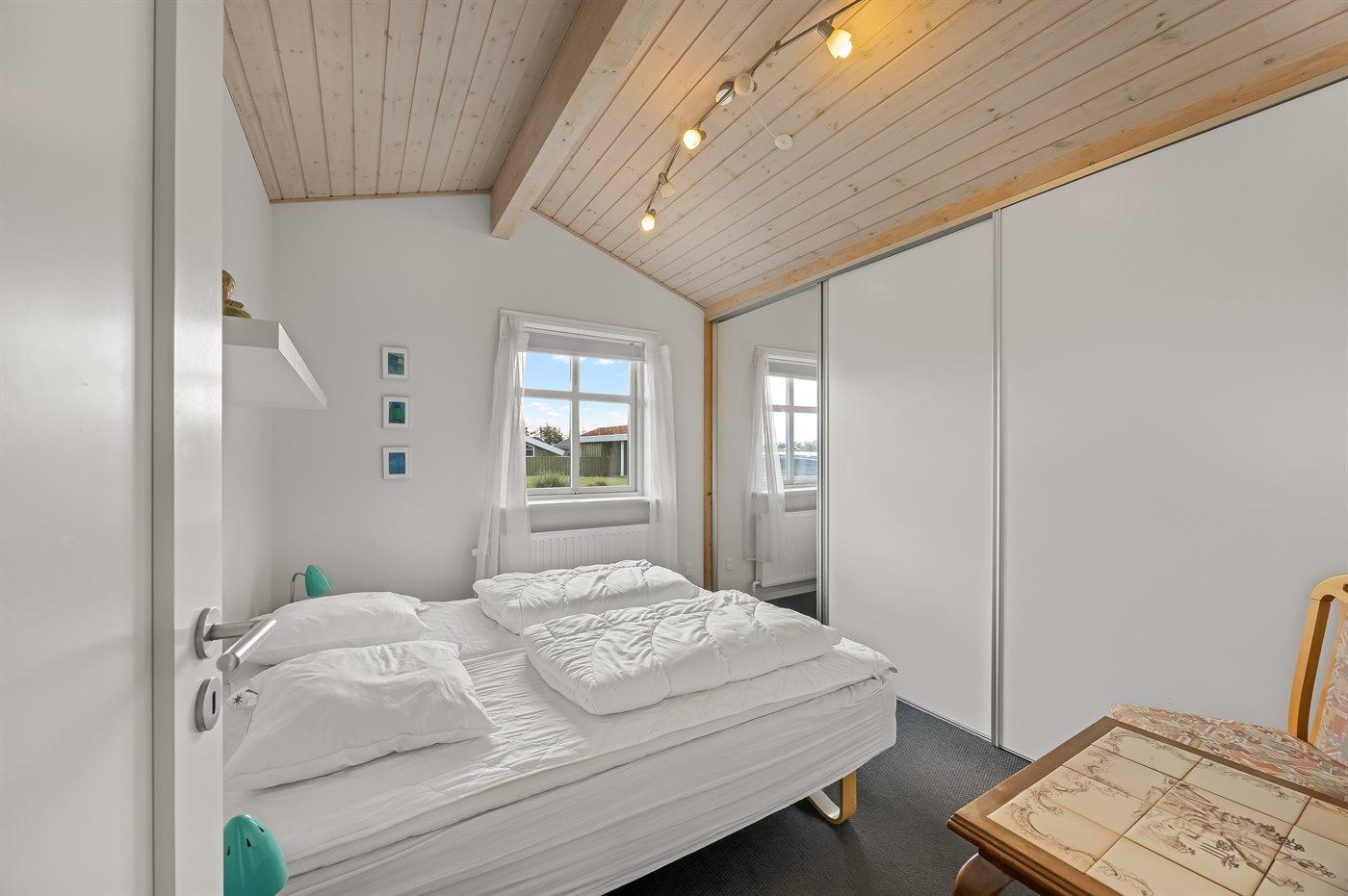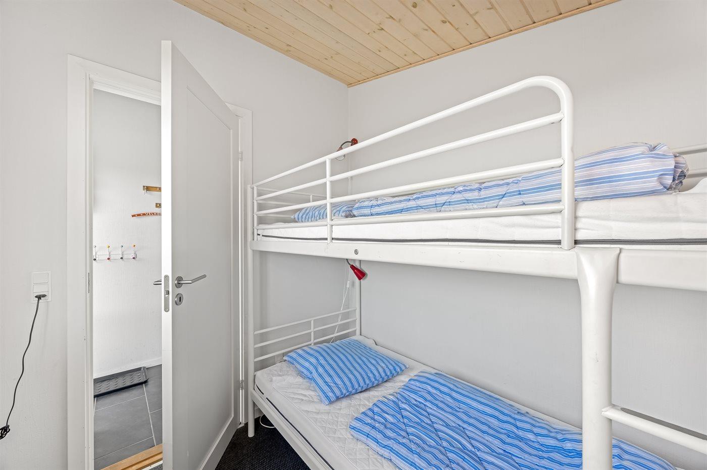 Der er i alt 3 soveværelser. Sovepladserne fordeler sig på: 2 sovepladser i dobbeltseng. 2 sovepladser i enkeltsenge. 2 sovepladser i køjeseng. Derudover er der 1 stk. barneseng.