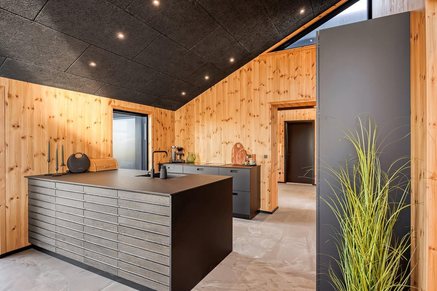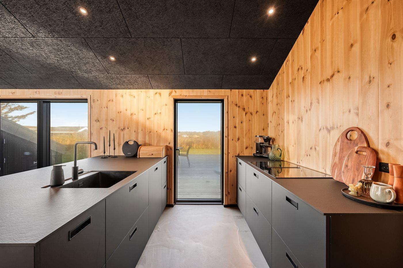 Køkkenet er udstyret med 1 køleskab. Der er 4 induktionskogeplader, varmluftovn samt opvaskemaskine.