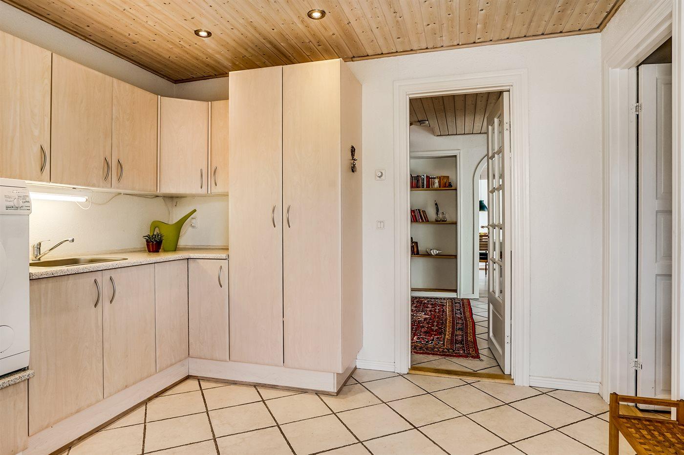 Køkkenet er udstyret med 1 køleskab. Der er 4 keramiske kogeplader, varmluftovn, mikrobølgeovn samt opvaskemaskine.
