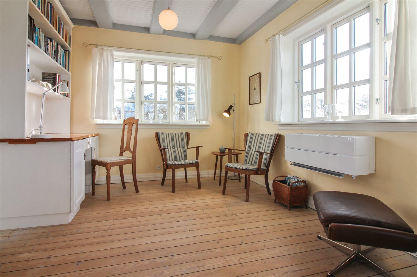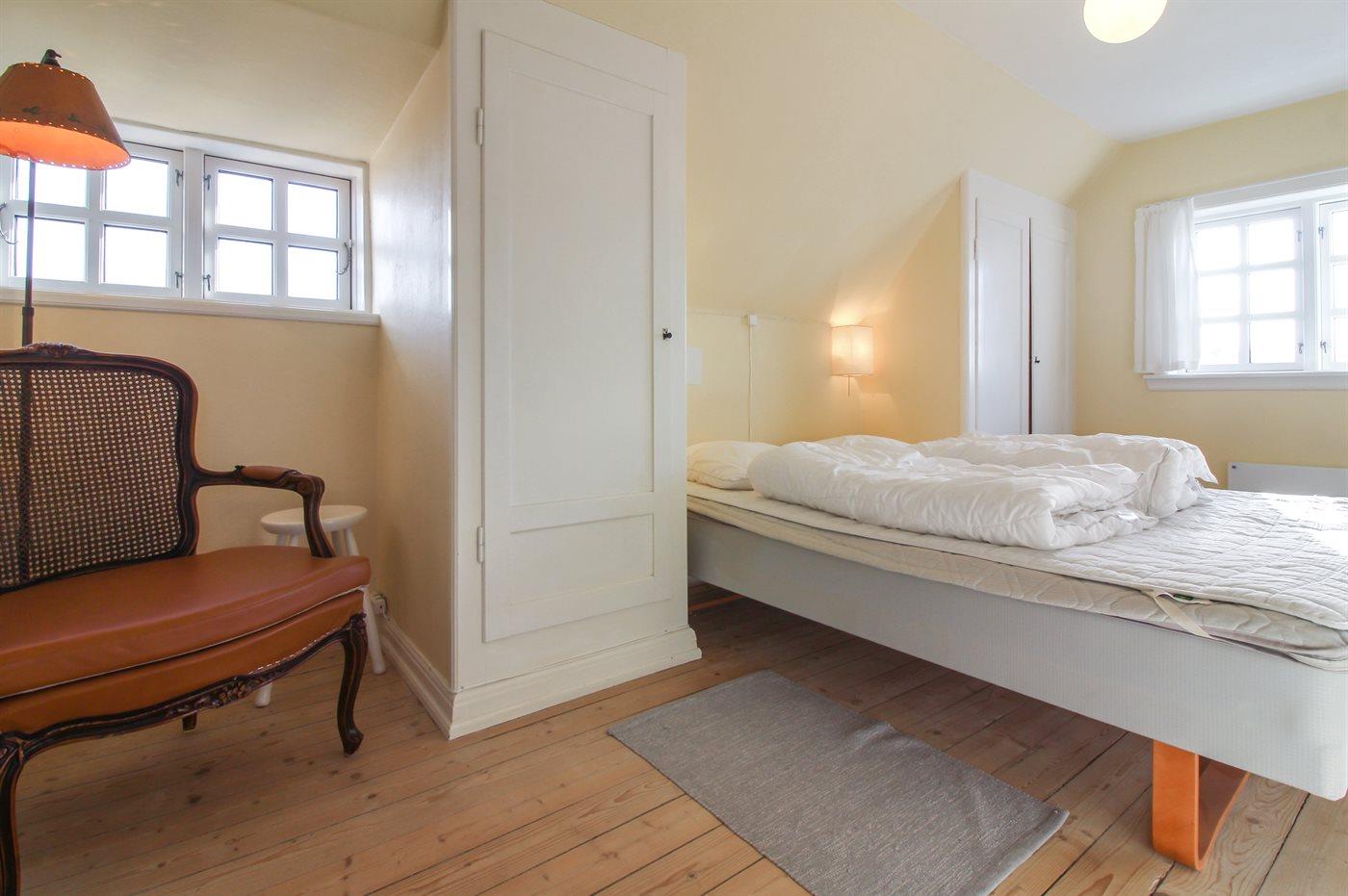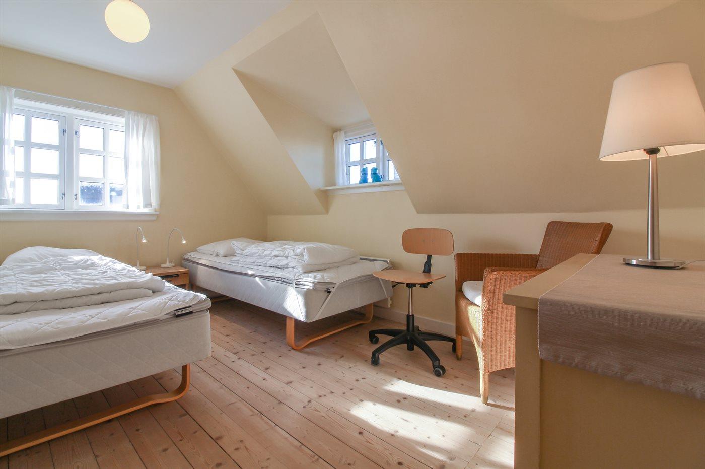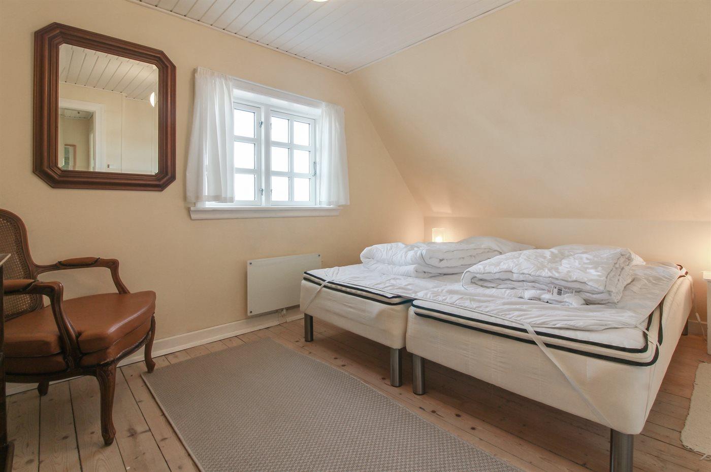 Der er i alt 4 soveværelser. Sovepladserne fordeler sig på: 6 sovepladser i dobbeltsenge. 2 sovepladser i enkeltsenge.
