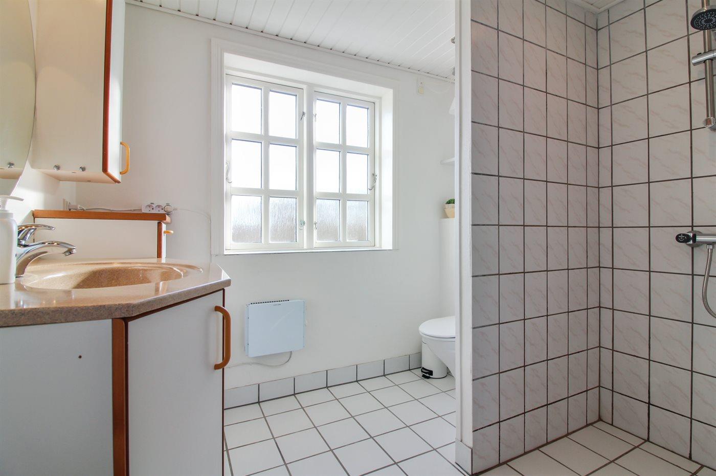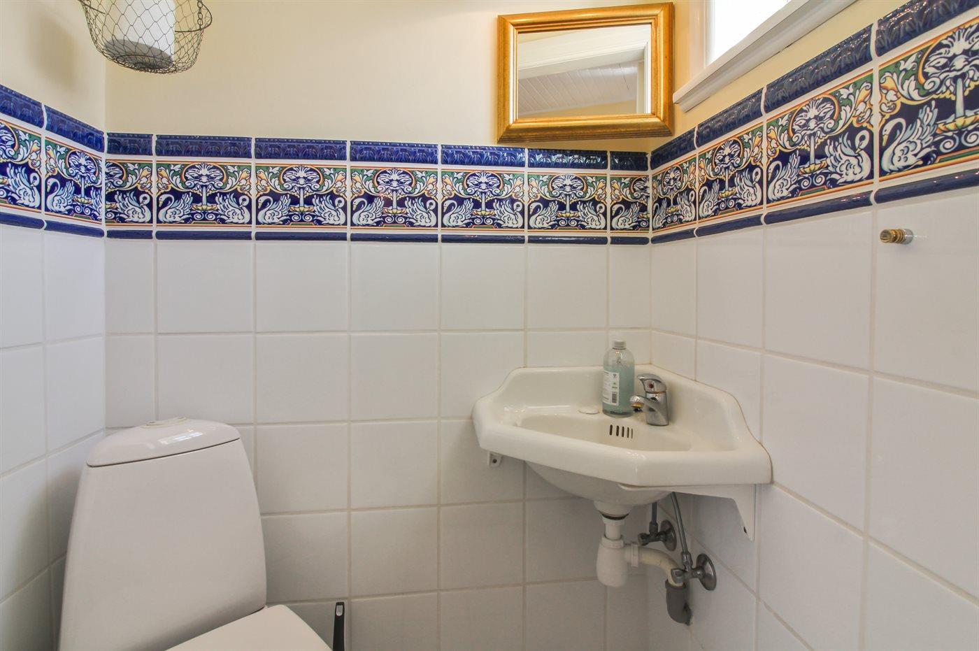 Der er 1 badeværelse med bruseniche og 2 toiletter, heraf 1 gæstetoilet. Der er gulvvarme på 1 badeværelse. Der er gulvvarme på gæstetoilettet.
