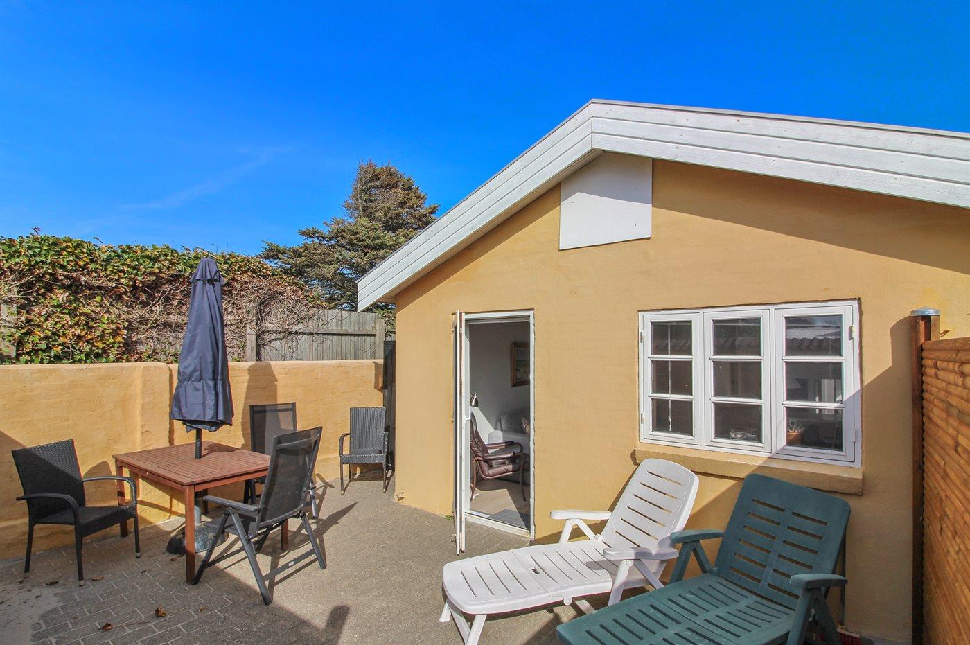 Man kan starte dagen med en dukkert eller en gåtur til stranden eller i klitterne for derefter at komme hjem og nyde morgenmaden på den lille morgensolsterrasse. Eftermiddagskaffen kan derimod nydes på den lukkede og ugenert beliggende terrasse med eftermiddagssol.
