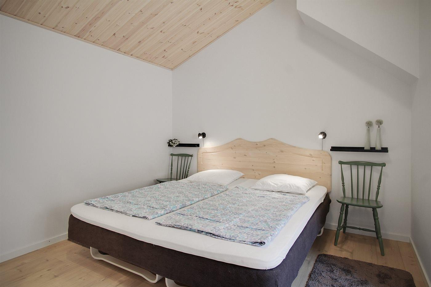 Der er i alt 1 soveværelse. Sovepladserne fordeler sig på: 2 sovepladser i dobbeltseng. 2 sovepladser i sovesofa (dobbelt). Derudover er der 1 stk. barneseng.