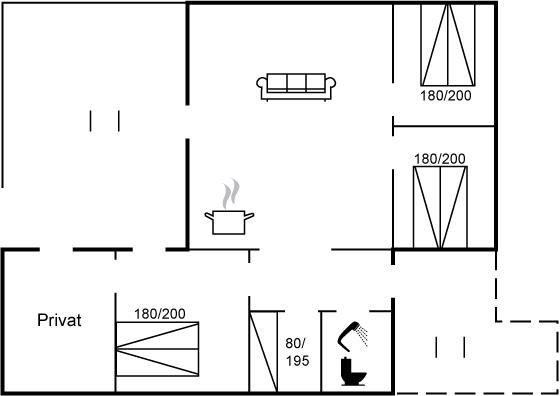 Der er i alt 4 soveværelser. Sovepladserne fordeler sig på: 6 sovepladser i dobbeltsenge. 1 soveplads i enkeltseng.