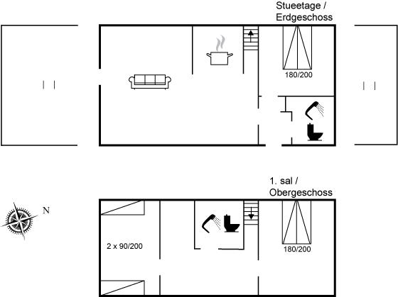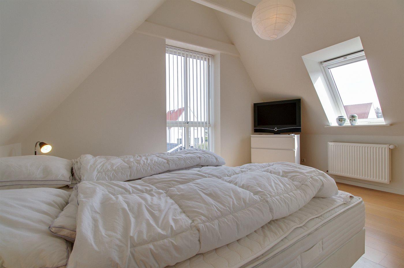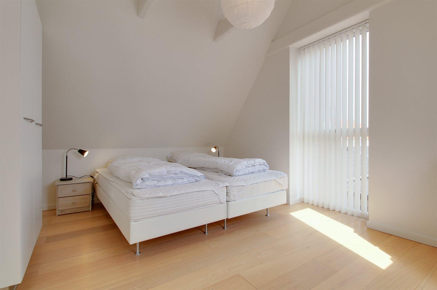 Der er i alt 3 soveværelser. Sovepladserne fordeler sig på: 4 sovepladser i dobbeltsenge. 2 sovepladser i enkeltsenge.