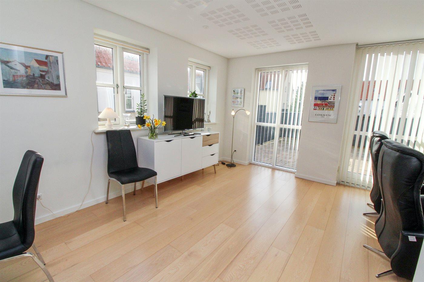 Lyst og lækkert sommerhus i rækkehusbebyggelse beliggende i Josefines Have. Josefines Have er beliggende centralt i Løkken med kort afstand til centrum og stranden, men også til Løkken Hallen med adgang til svømmehal med vipper, rutsjebane og stor spa.