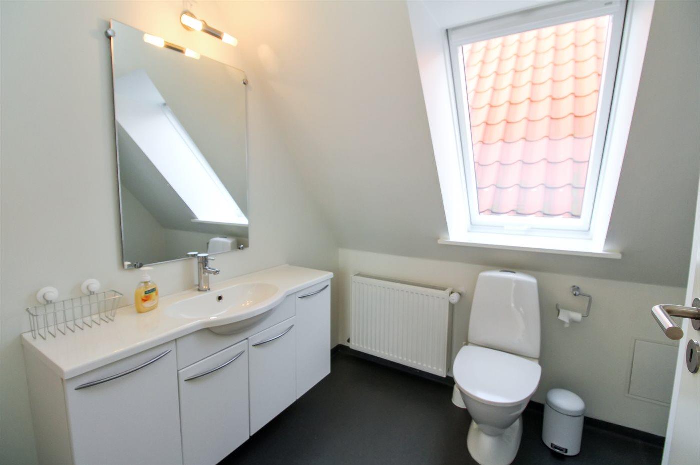Der er 2 badeværelser med bruseniche og 2 toiletter. Der er gulvvarme på 1 badeværelse.