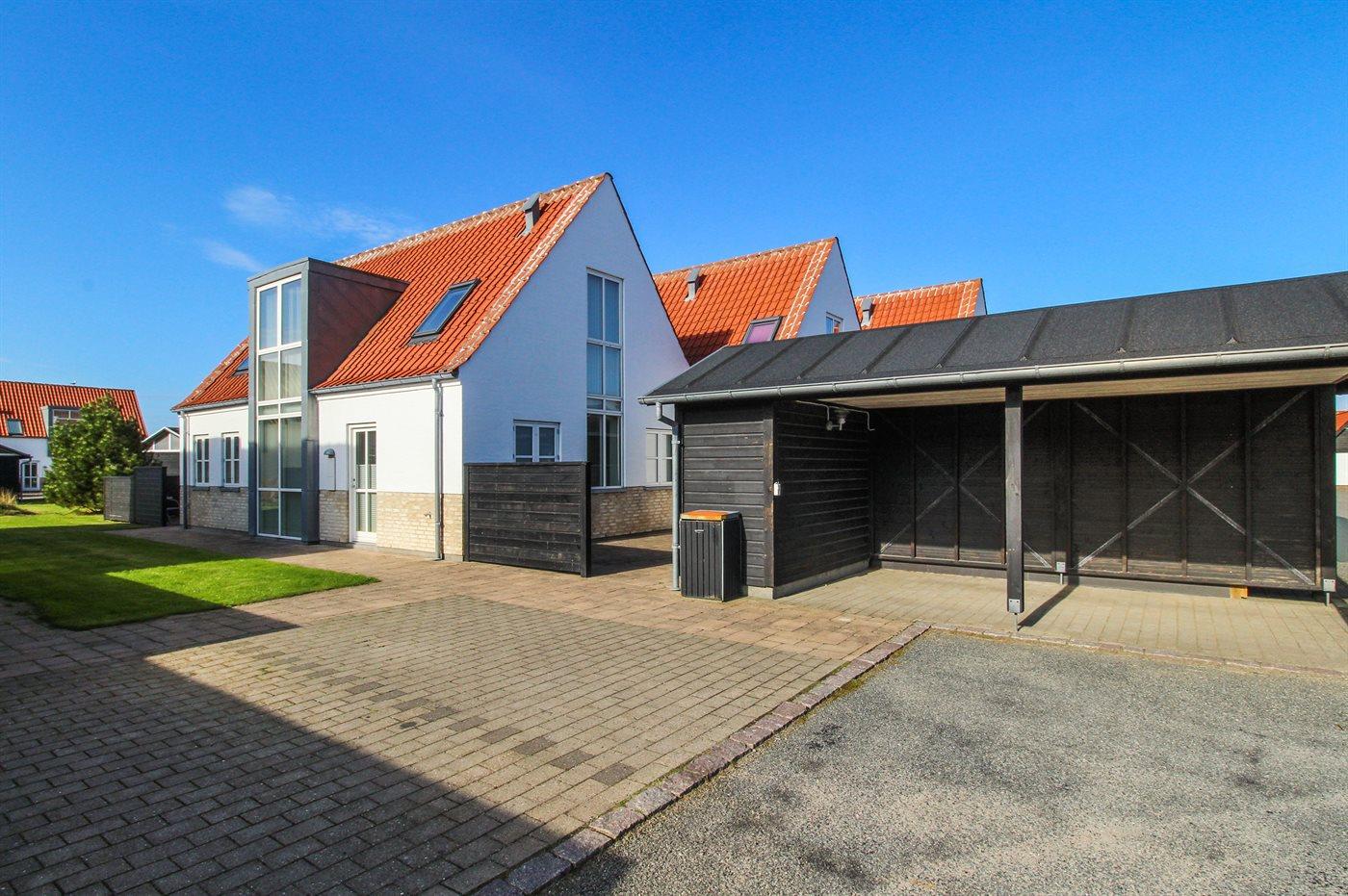 Ferieboligen er beliggende på en 179 m² stor naturgrund. Der er 600 m til havet. Nærmeste forretning er beliggende i en afstand af 200 m. Til ferieboligen hører 60 m² lukket terrasse. Der er redskabsrum. Der er carport til rådighed. Parkering ved ferieboligen.