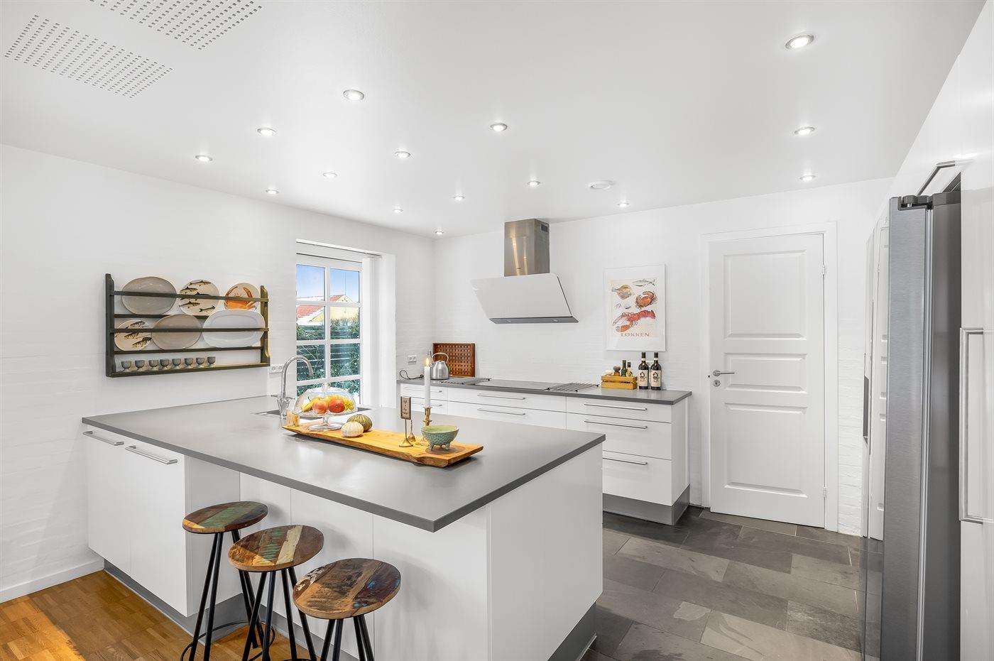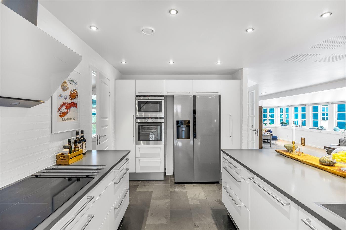 Køkkenet er udstyret med 1 amerikansk køleskab med isterninger og vand - 400 liter kølekapacitet og 206 liter frysekapacitet. Der er 4 induktionskogeplader, varmluftovn, mikrobølgeovn samt opvaskemaskine.