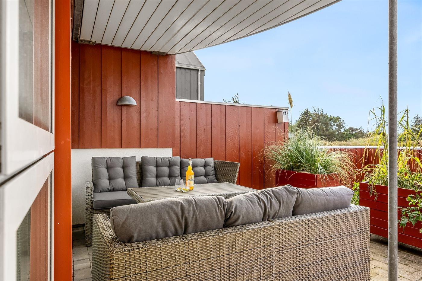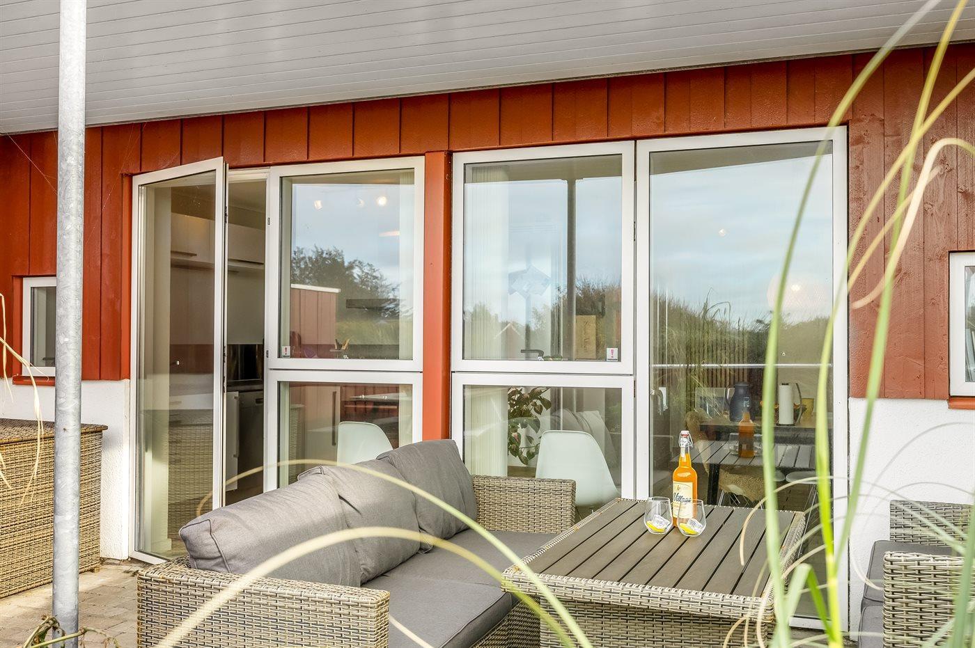 Ferieboligen er beliggende på en 160 m² stor havegrund. Grunden er indhegnet. Der er 700 m til havet. Nærmeste forretning er beliggende i en afstand af 700 m. Til ferieboligen hører åbent terrasseareal. Desuden er der overdækket terrasse. Udgang til altan. Der er redskabsrum. Grill til rådighed. Parkering ved ferieboligen.