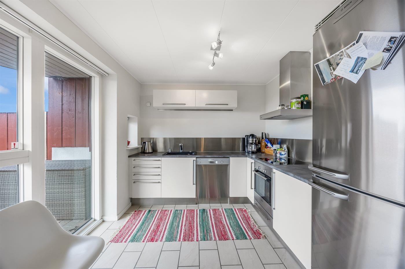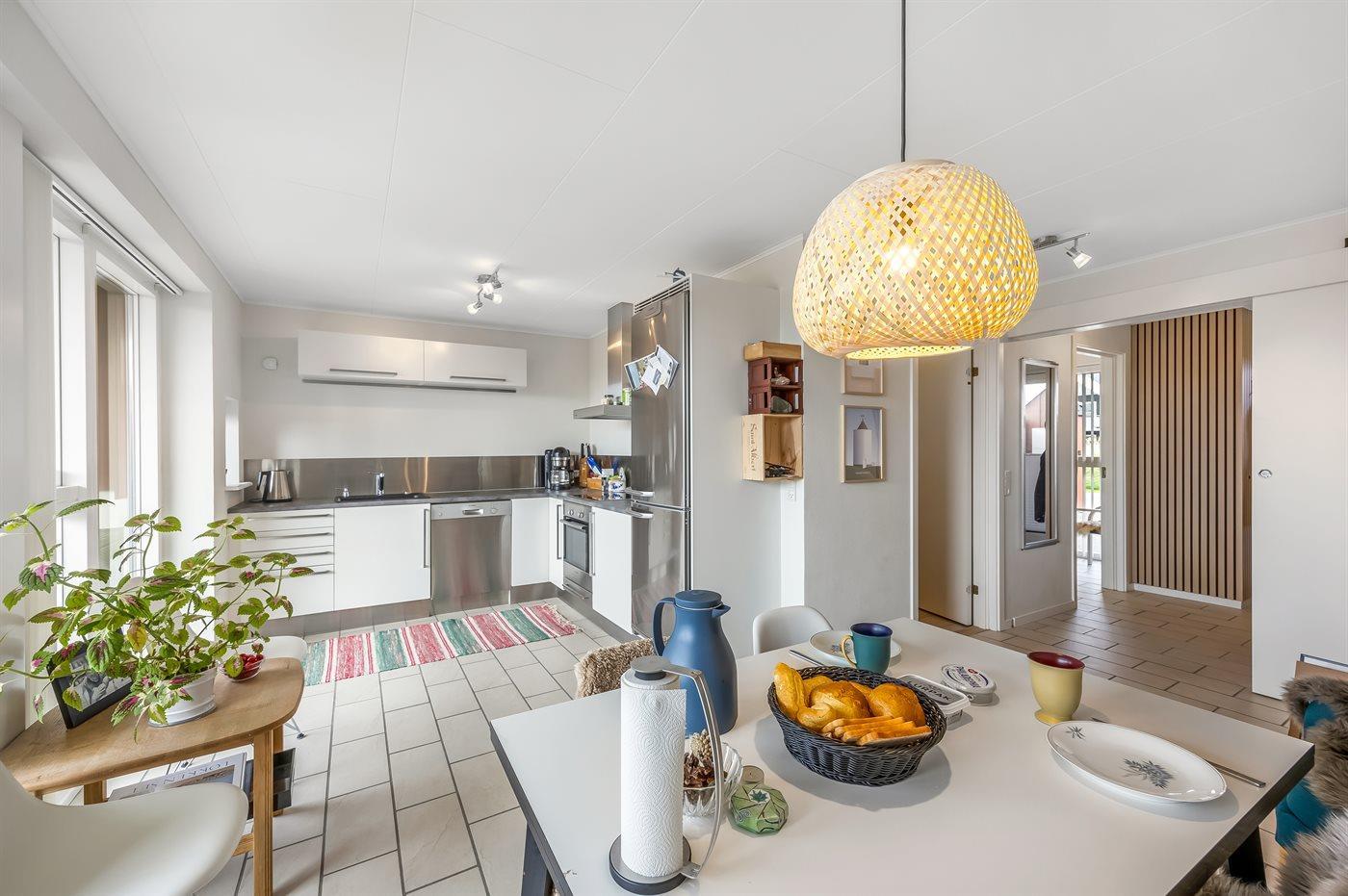 Køkkenet er udstyret med 1 køleskab. Der er 4 keramiske kogeplader, varmluftovn, mikrobølgeovn samt opvaskemaskine.