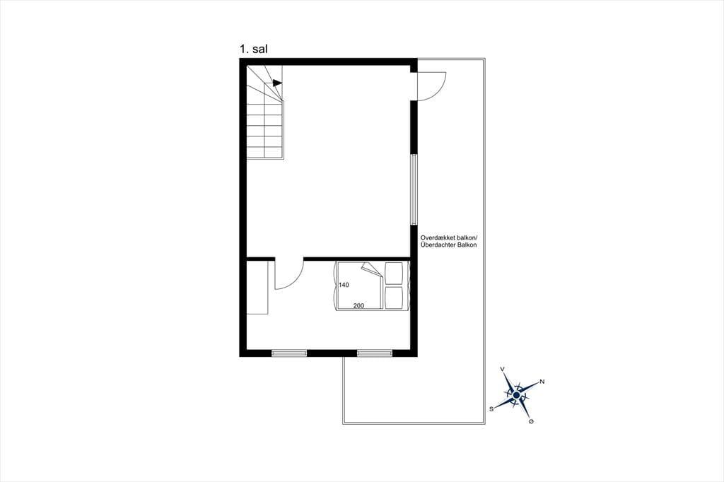 Ferielejligheden er velholdt og gennem årene delvist moderniseret. Den råder over fire sovepladser og er derfor velegnet til både en lille familie og et enkelt eller to par, som gerne vil holde ferie sammen. I stueetagen finder man entre, et stort soveværelse, badeværelse med bruseniche og spisekøkken med udgang til terrasse. På 1.salen er endnu et soveværelse og et hyggeligt opholdsrum med tv og udgang til en stor balkon. Har man brug for at vaske og tørre tøj til de mange badeture i Vesterhavet, er der vaskemaskine og tørretumbler til møntindkast i fællesrummet, og på parkeringspladsen står bilen trygt fra feriens start til slut. Alt i alt en brugbar og ideel base for en god ferie i det nordjyske.